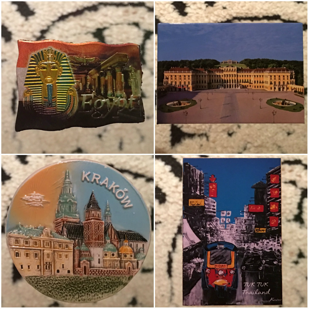 Egypti, Itävalta, Puola ja Thaimaa. Egypti tuli maailmanmatkaajaystävältä, Itävalta oikealta ystävältä vuosien takaa, Puola uskolliselta lukijalta ja Thaimaa Pakkasesta paratiisiin -blogia kirjoittavilta matkabloggaajaystäviltä.