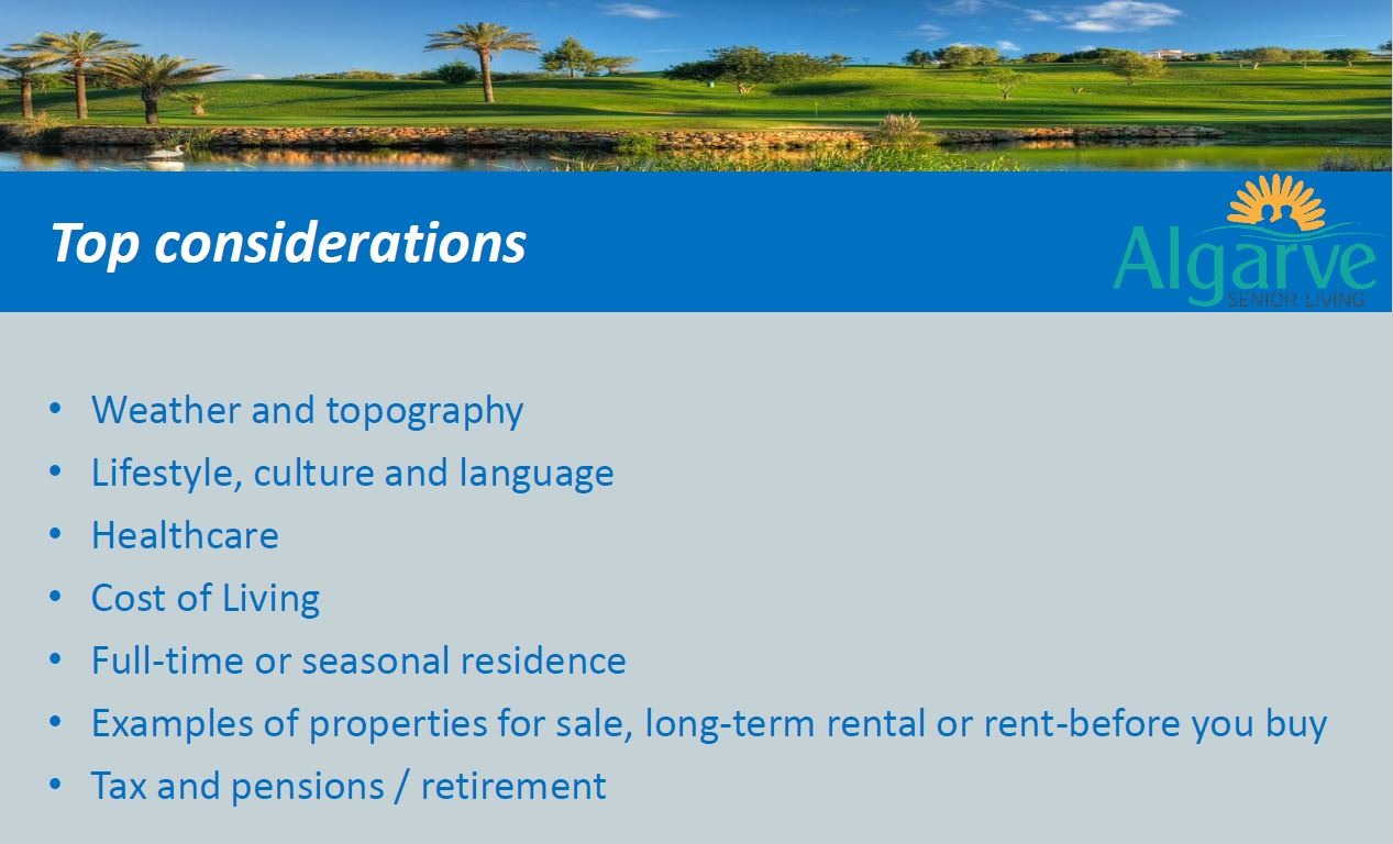 Algarvessa on tarjolla myös tutustumisretkiä eri alueisiin, sillä tärkeää on löytää ensin itselleen sopiva alue ja vasta sen jälkeen tältä alueelta sopiva asunto. Osa onkin tehnyt siten, että asuvat aluksi kuukauden useammassa eri kylässä tutustuakseen eri vaihtoehtoihin kunnolla.