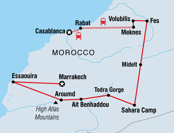 Vasta tässä vaiheessa aloin oikeasti tarkastella Marokon osuutta, ajatuksena tarkistaa, että sisältääkö se kaiken, mitä siellä kannattaisi nähdä, ja totesin, ettei tuolla aikataululla saada kaikkea: Casablanca, Rabat, Fes, Marrakesh, Essaouira. Lueskelin nettisivuilta juttuja Marrakesh vai Fes, enkä tullut sen viisaammaksi. Lopulta totesin, että taitaa olla niin, että pelkkään Marokkoonkin tarvitaan ainakin viikko ja suuntasinkin katseeni Algeriaan.