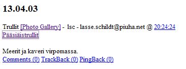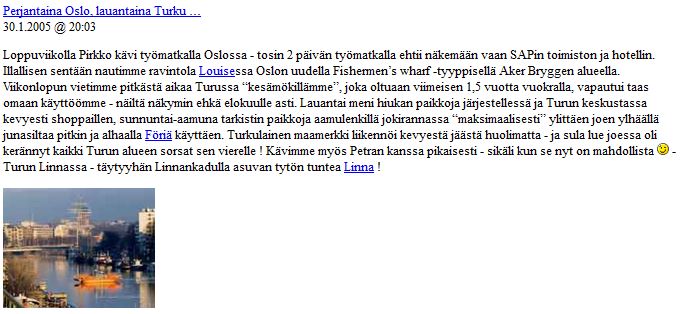 Koska muistini aiheesta oli edelleen hatara, lähdin seuraavaksi etsimään menneisyyteen hautautunutta blogiamme netin arkistosta ja löytyihän se sieltä! Viimeisimmät jutut olivat pari viikkoa ennen Meriharakan ensimmäistä juttua:
