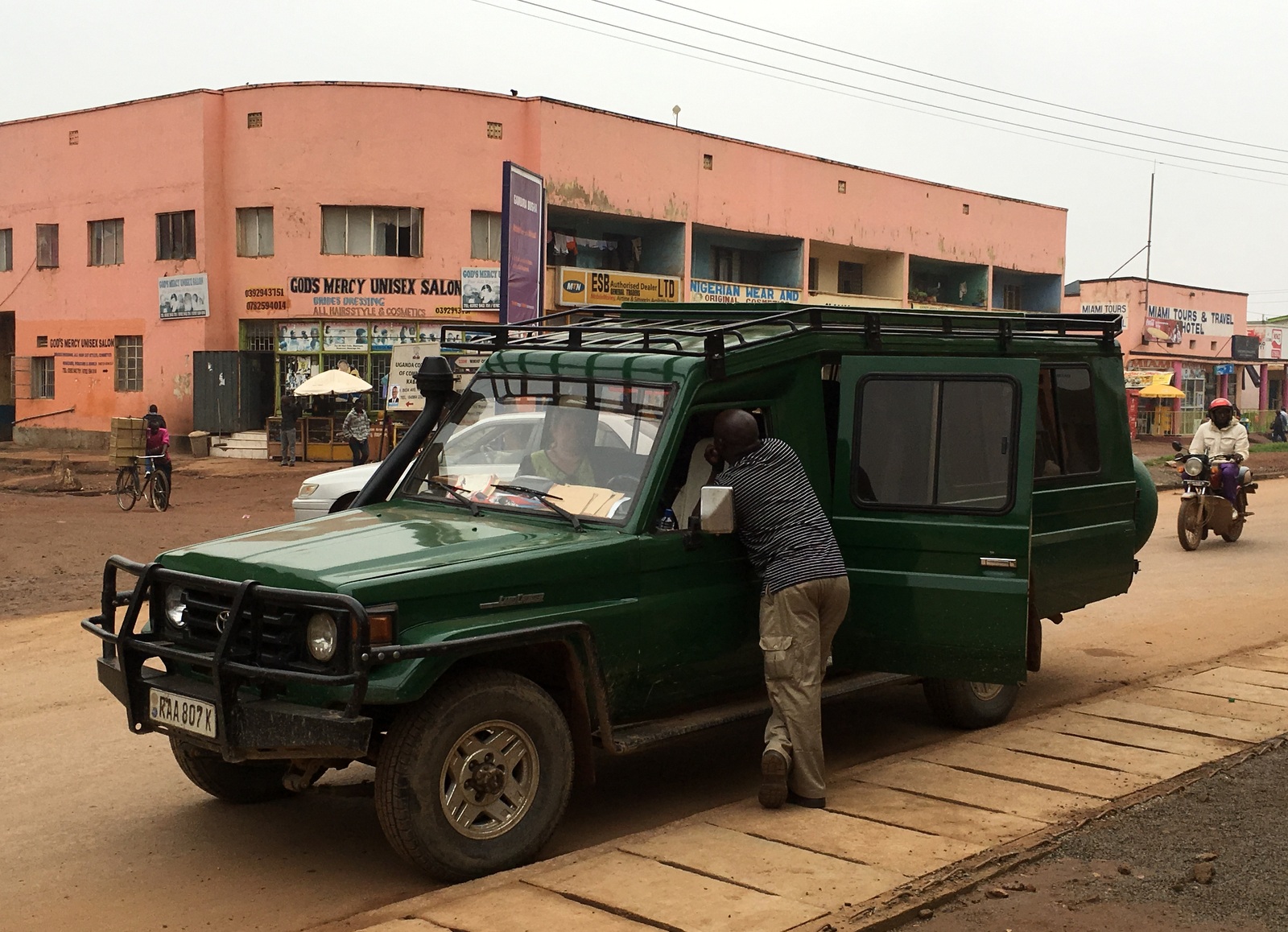 Korjaus venyy ja oppaamme lähtee mopotaksilla välillä vaihtamaan meille lisää paikallista valuuttaa. Kuljettajamme epäilee kyllä, että vaihtokurssi ei hänelle, valkoihoiselle, olisi kovin hyvä, mutta Keniassa vakituisesti asuva oppaamme vakuuttaa selvityivänsä, ja selviytyykin.
