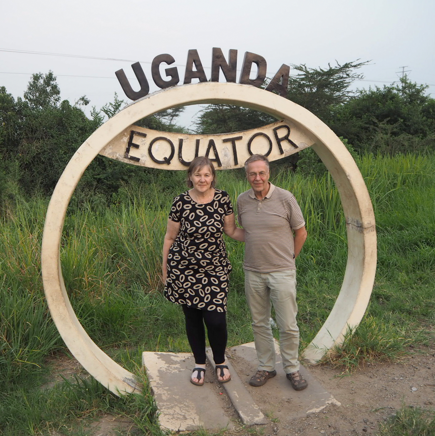 Ennen saapumistamme Queen Elizabeth -puistoon ylitämme päiväntasaajan. Toki olemme sen lentäen ylittäneet jo useamman kerran ja Ecuadorissa maitsekin, mutta ansaitsee se silti tälläkin kertaa pysähdyksen ja muutaman valokuvan.