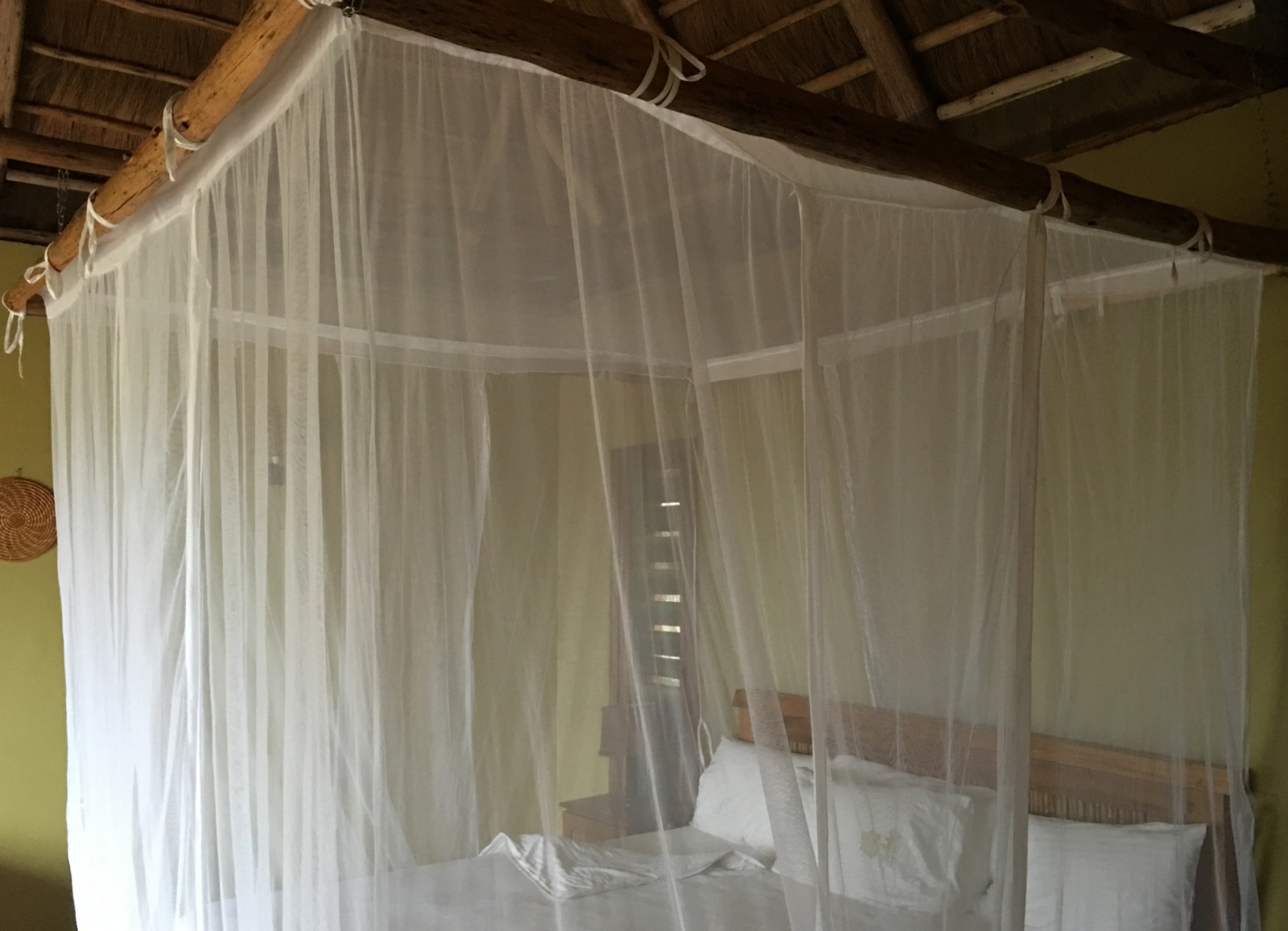 Ihamba Safari Lodge on Lake George -järven rannalla ja yöllä virtahepojen äänet kuuluvat kuin ne olisivat ihan majan terassin edustalla, mutta eivät sentään, äänet vaan kantavat yössä. Huoneessamme on ensin kylpyhuone, joka toimittaa myös eteisen virkaa ja sänkymme on moskiittoverkkojen tiiviisti ympäröimä.