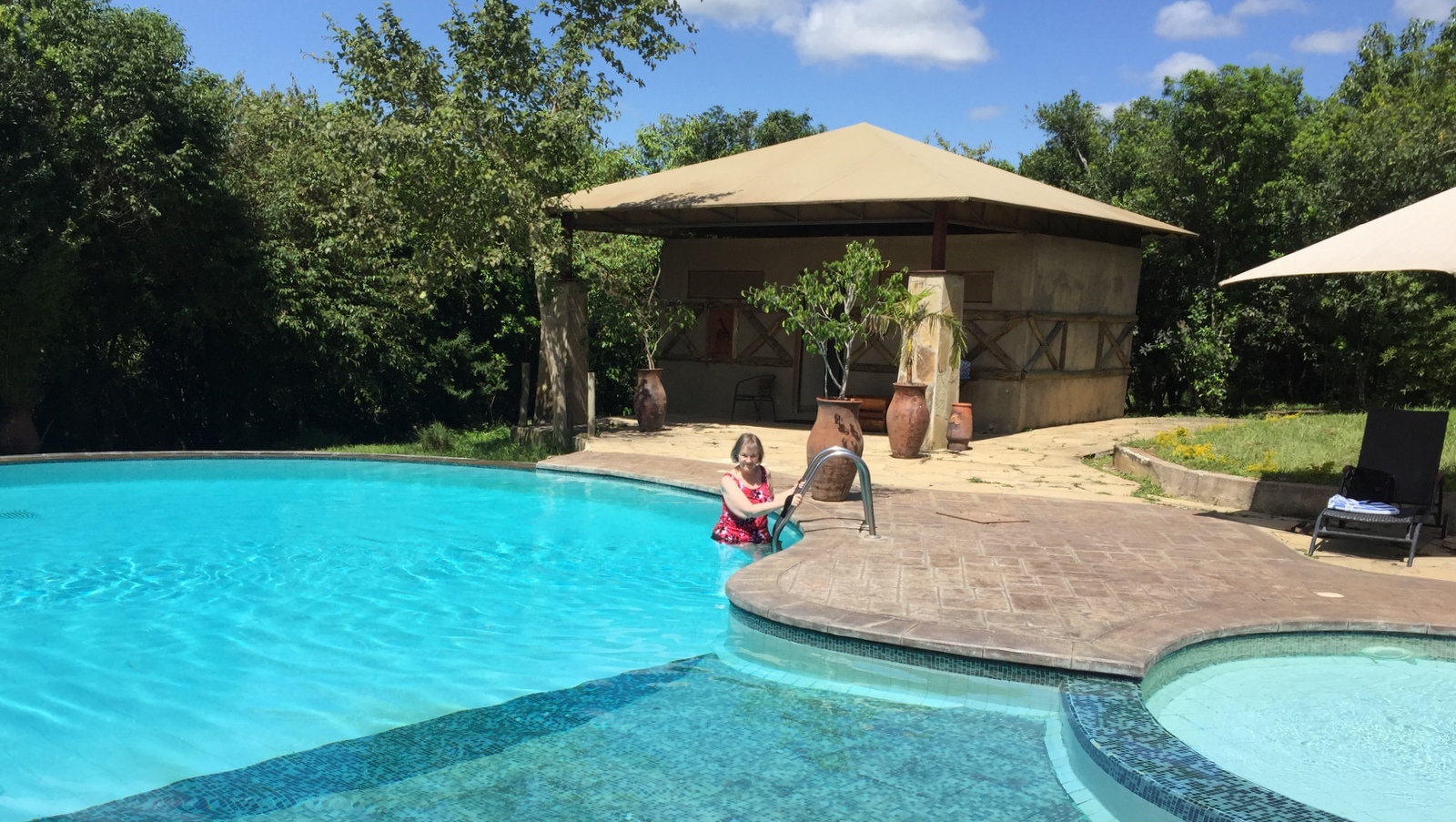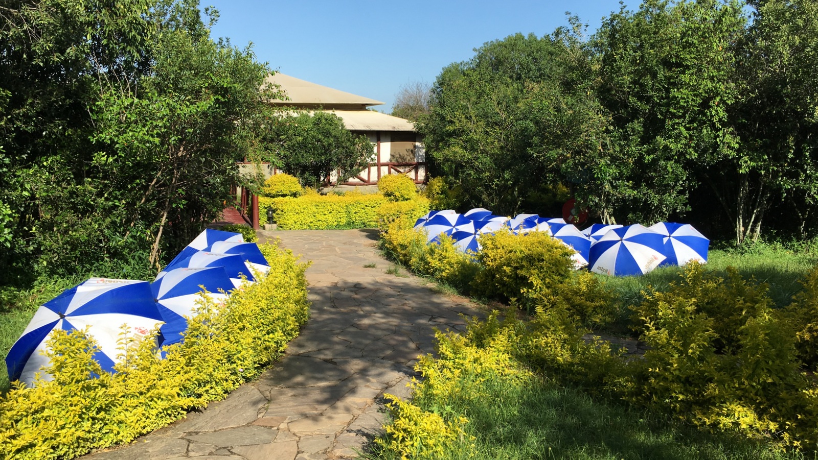 (Kuva uima-altaalta ja kuva sateenvarjoista pienen sadekuuron jälkeen ovat juuri tästä Ashnil Mara Camp lodgesta.)