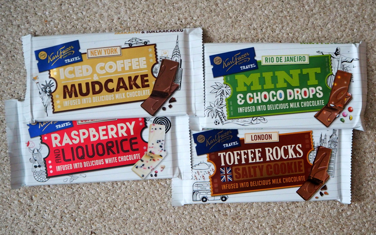 (Juttu on toteutettu yhteistyössä Fazerin kanssa ja Karl Fazer Travel -suklaita vastaan. Tosin korvaus ei ollut suuri, sillä voit hakea itsellesi koko setin kaupasta alle kympillä, mutta minut nyt saa tekemään aika paljonkin pienelläkin määrällä suklaata :-) )