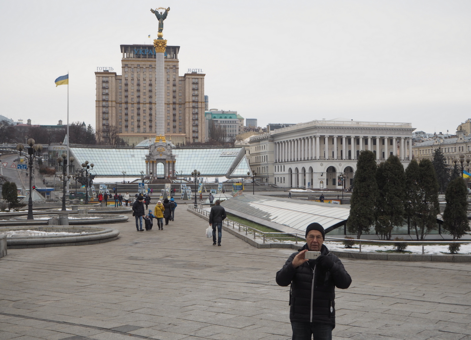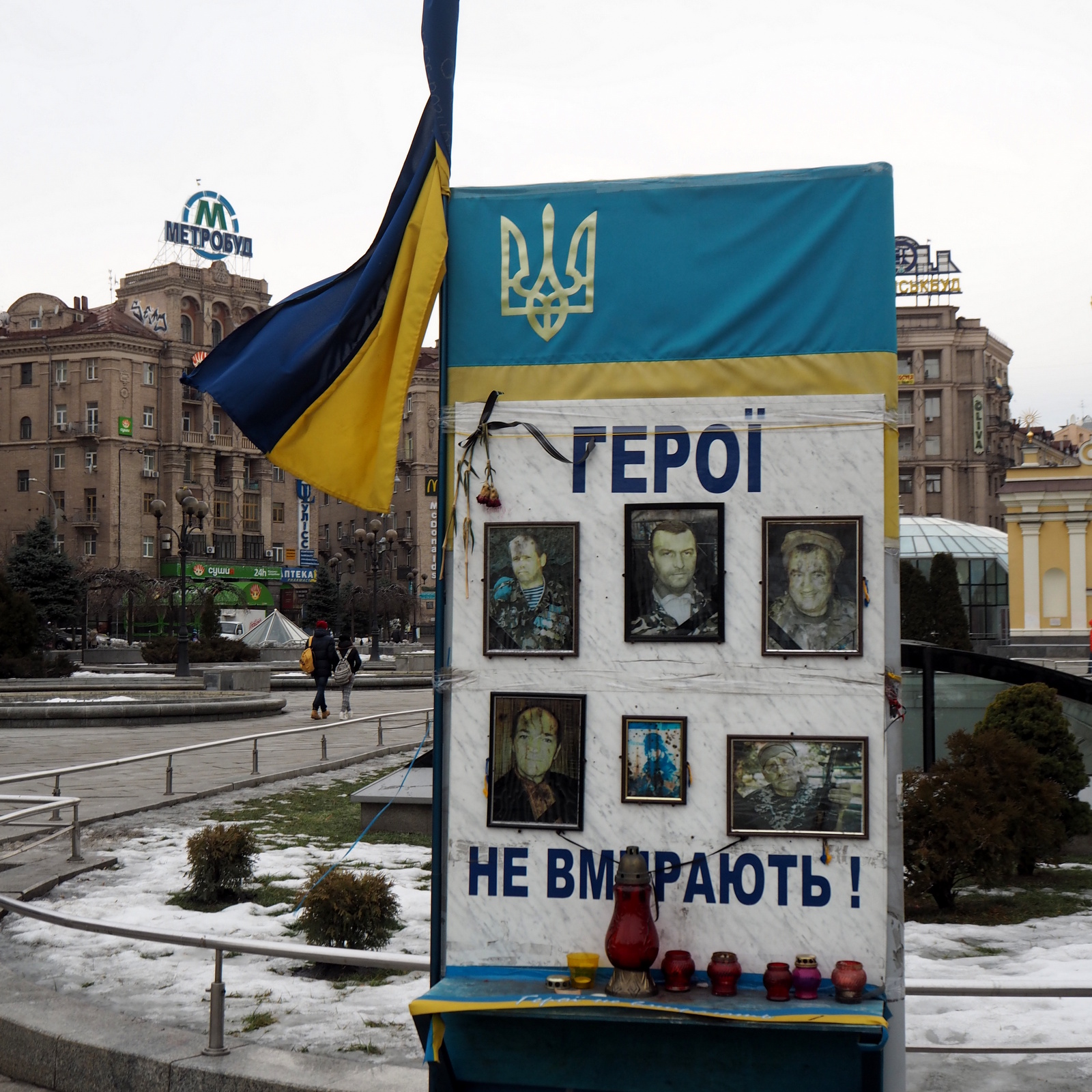 Ukrainan kriisin jäljiltä Maidan-aukio on ainakin nimenä tullut jokaiselle meille tutuksi. Tammikuisena lauantaina pari viikkoa sitten aukiolla oli kuitenkin väljää, mutta joka puolella olevat julisteet, kynttilät, kukat ja muut muistoesineet muistuttivat kuitenkin siitä, että olemme surullista historiaa todistaneella paikalla.