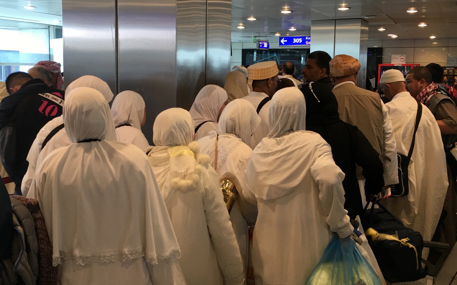 Jatkolennolle Istanbulista Algeriin jonottaessamme hetken mietimme valkokaapuisessa ryhmässä, että mihinkähän olemme menossa, mutta sittemmin opimme, että tämä ei ole tavallinen algerialainen pukukoodi: nämä ihmiset olivat ilmeisesti palaamasta pyhiinvalellusmatkalta Saudi-Arabiasta.