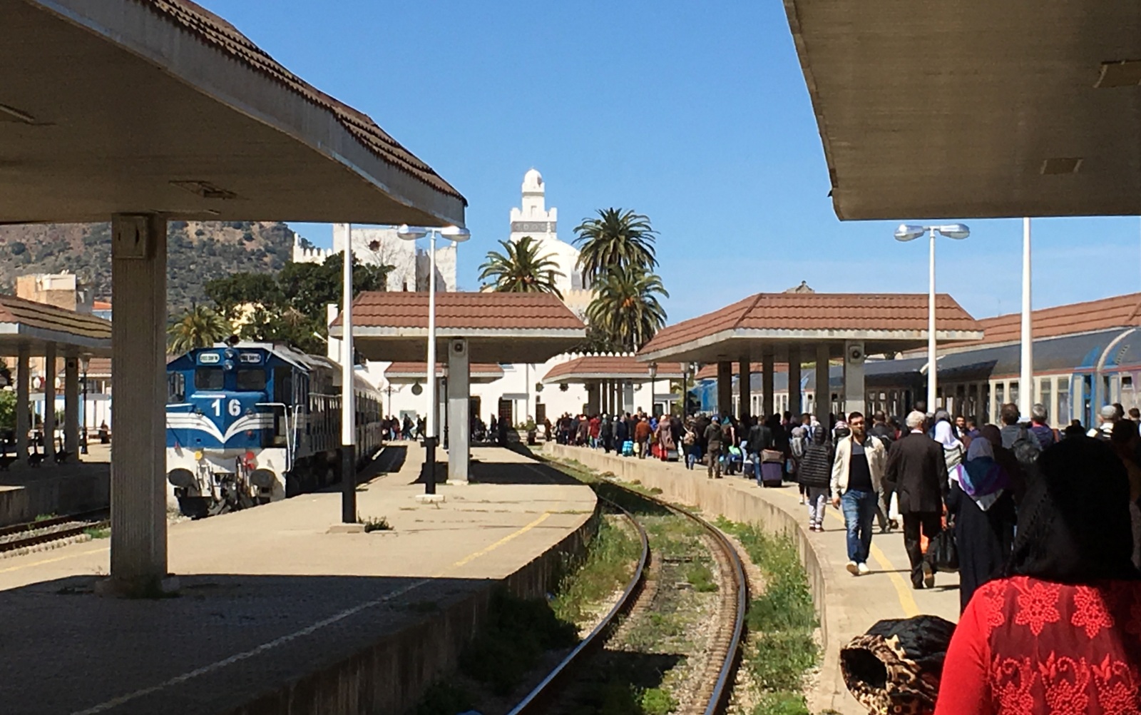 Algierisista Oraniin matkustimme junalla, 1. luokassa, joka ei nyt ollut loistokas, mutta 5 tunnin matka sujui ihan suomalaisittainkin mukavassa ja rauhallisessa vaunussa hyvin. Tarjoilukin pelasi: tarjoiluvaunusta saattoi ostaa teetä ja pientä syötävää.