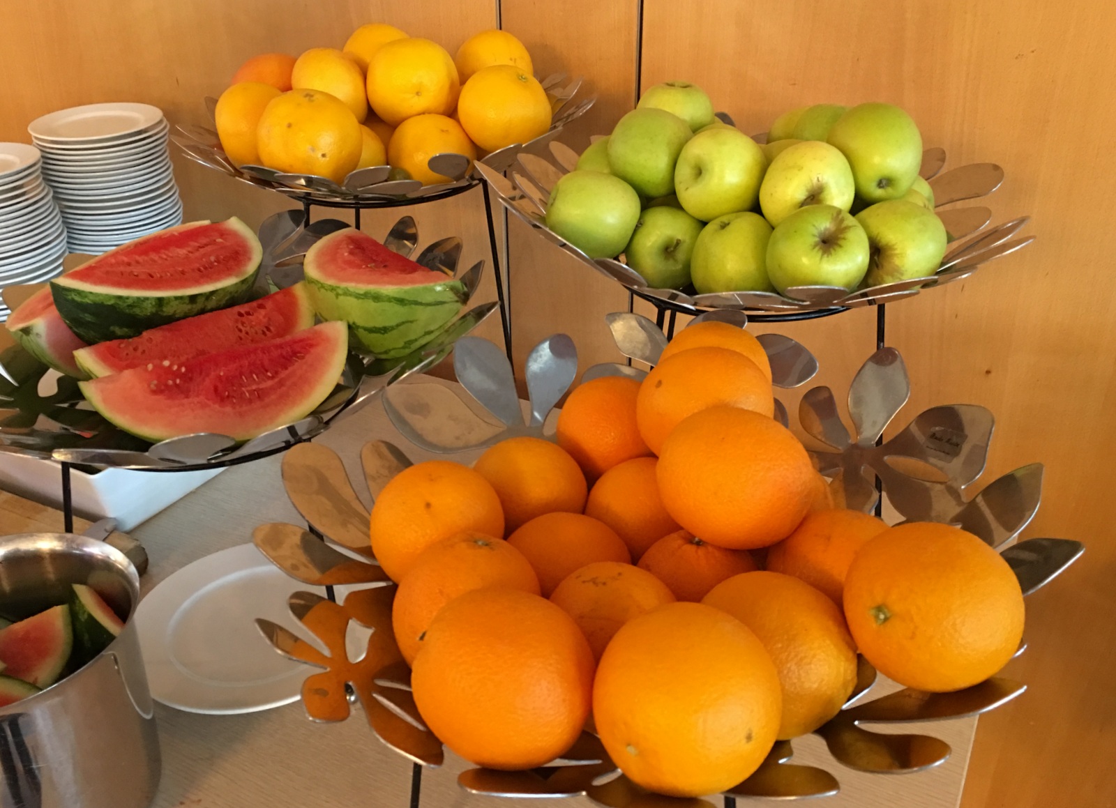 Hotellin aamupala oli … runsas? monipuolinen? Se ei erityisesti yllättänyt meitä miltään osin, mutta emme myöskään osanneet mitään erityisesti kaivata, jos ei sitten munakaskokkia, mutta harvemmin niitä kotimaassa tapaa olla.
