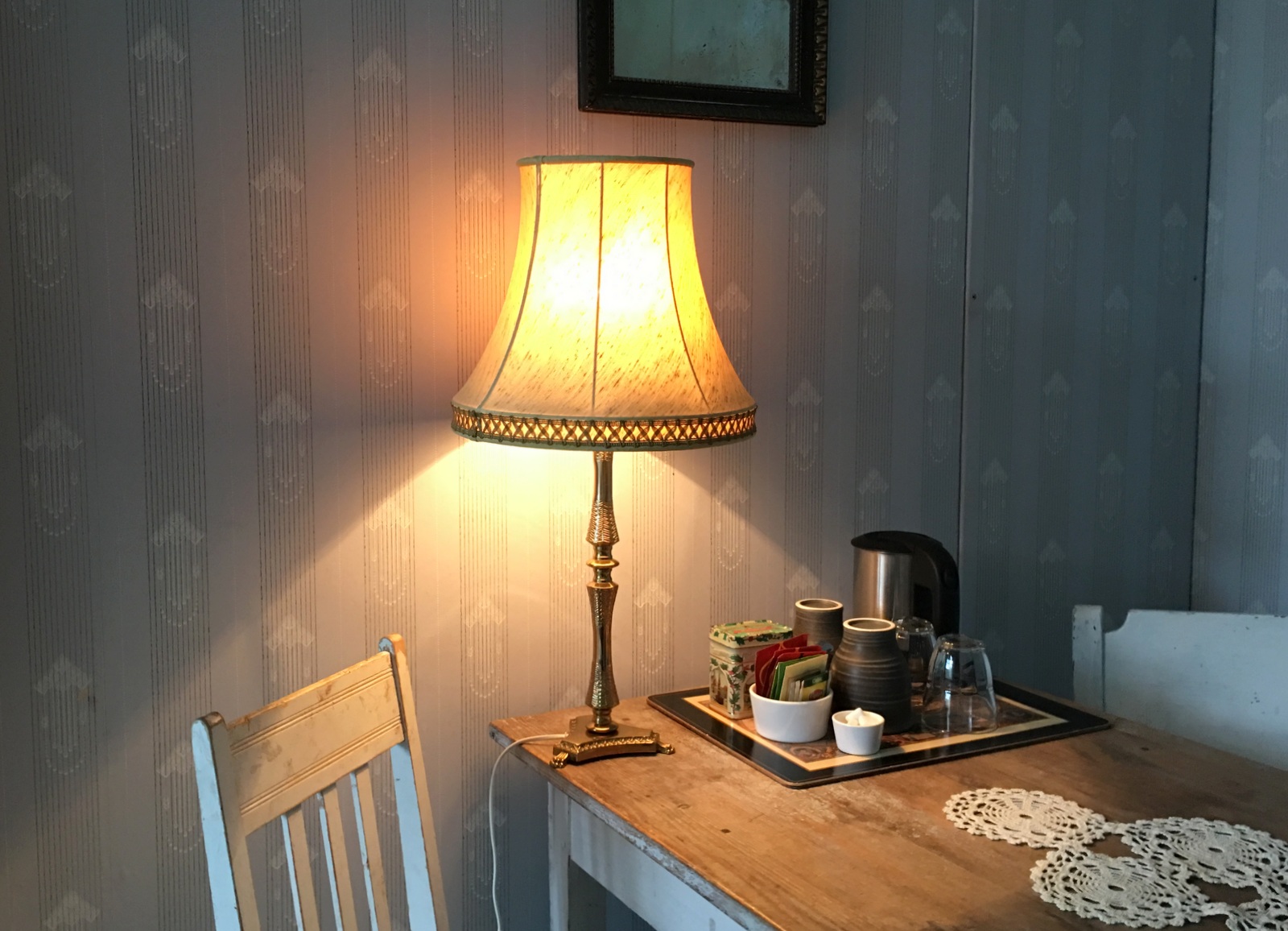 Huone on kahdellen hengelle tilava: sinne mahtuu sänky, pieni peilipöytä, joka tarjoaa myös hieman työskentelytilaa ja pieni pöytä ja nojatuoli. Kylpyhuone on toimiva, joskin täällä ulkonäkö on ehkä jo ohittanut käytännöllisyyden, mutta ainakin lyhytaikaisesti pienet asiat kuten se, että tuuletus käynnistetään huoneen ulkopuolella, eivät ole ylitsepääsemättömiä.