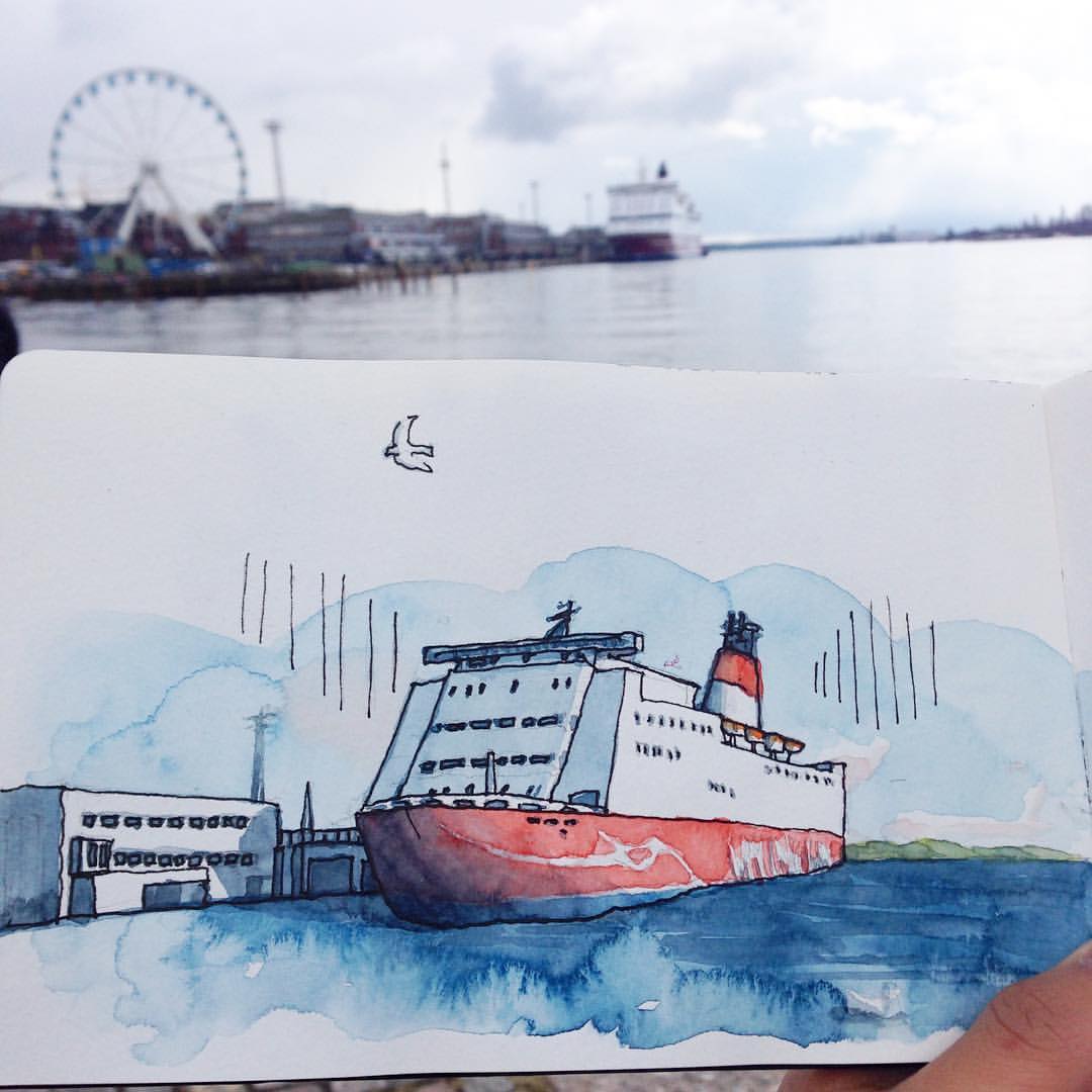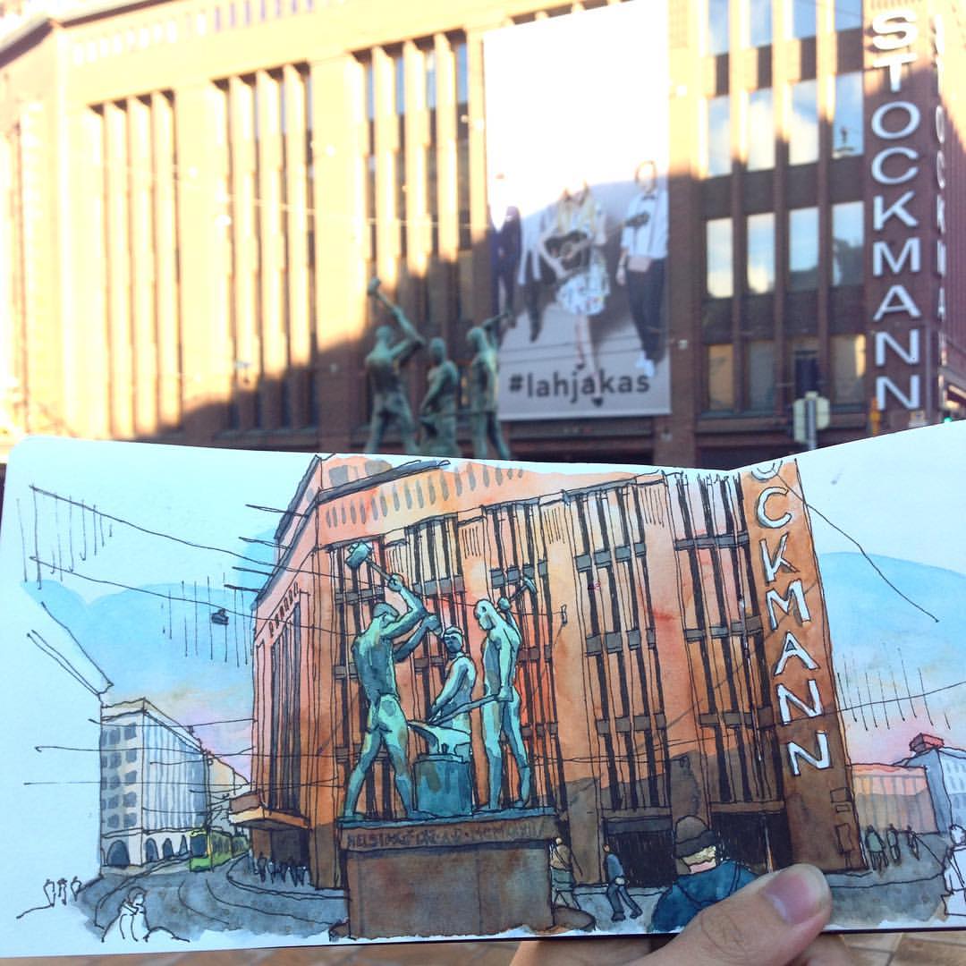 Tämän jutun otsikkokuva on Suomessa jonkin aikaa oleskelleen T K Justin Ngin piirros kuten alla olevat kaksi työtä (hänen luvallaan). Lisää piirroksia Helsingistä ja mm. Tukholmasta voit ihailla halutessasi hänen Instagram-tilillään.