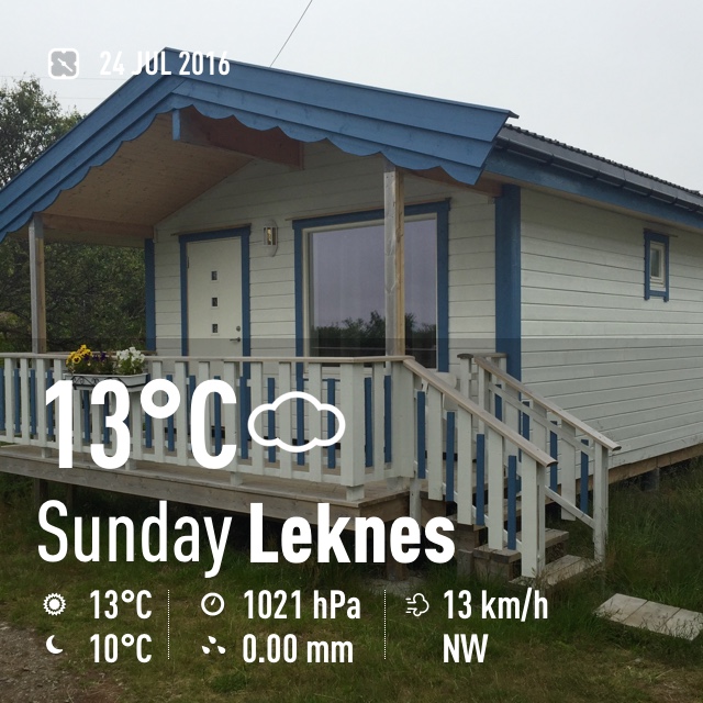 Suomeen luvattiin helteitä, mikä ei meitä harmittanut, sillä emme niistä juuri välitä. Mutta sen verran kiinnostuimme aiheesta sää, että päätimme kuvittaa Instagram-tilimme joka päivä yhdellä sääkuvalla. Tällainen oli heinäkuun viimeinen viikko kesällä 2016 Lofooteilla: ei satanut viikkoa putkeen. Itse asiassa satoi vain kahtena aamuna ja silloinkin kirkastui viimeistään puoleen päivään mennessä. Varsinaisia sadevaatteita käytimmekin vaan meriretkellä ja silloin vaan siksi, että olivat lämpimimmät vaatteemme.