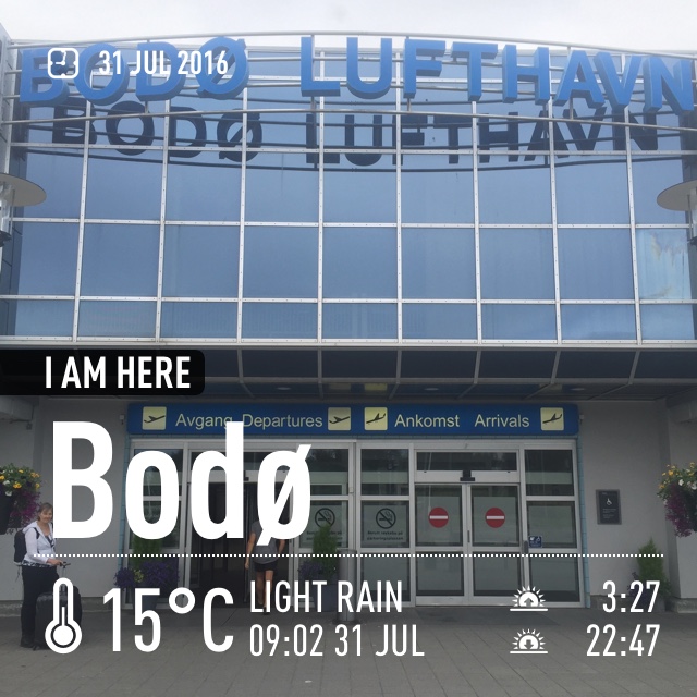 Lofoottien matkamme alkoi lennoilla Helsinki – Oslo – Bodö. Olimme perillä myöhään illalla, joten majoituimme yhdeksi yöksi paikalliseen Radisson Blu -hotelliin (mennen tullen). Vuokra-autonkin noudimme vasta seuraavana aamuna, sillä emme halunneet yöllä paneutua outoon autoon ja kaupunkiin.