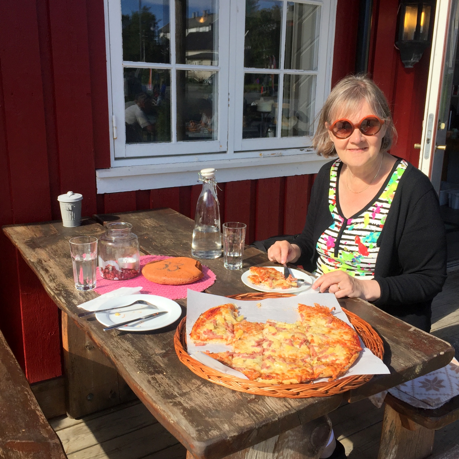 Viimeisen yömme Lofooteilla vietimme läheisessä Sörvågenin kylässä. Lautta mantereelle lähti aamulla ja halusimme olla valmiiksi lähellä Moskenesiä ja Sörvågen Inn oli lähin majoitus, jossa oli tilaa. Yhdeksi yöksi ihan ok majoitus: oma huone ja pieni kylpyhuone ja yhteiskäytössä oleva keittiö, jossa olisi voinut tehdä illalla ruokaa tai aamulla aamiaisen. Avaimen saa läheisestä ravintolasta, joka ei kuitenkaan aamulla ole auki, joten me jätimme pääosin aamiaisen syömisen lautalle, olihan siihen siellä neljä tuntia aikaa!