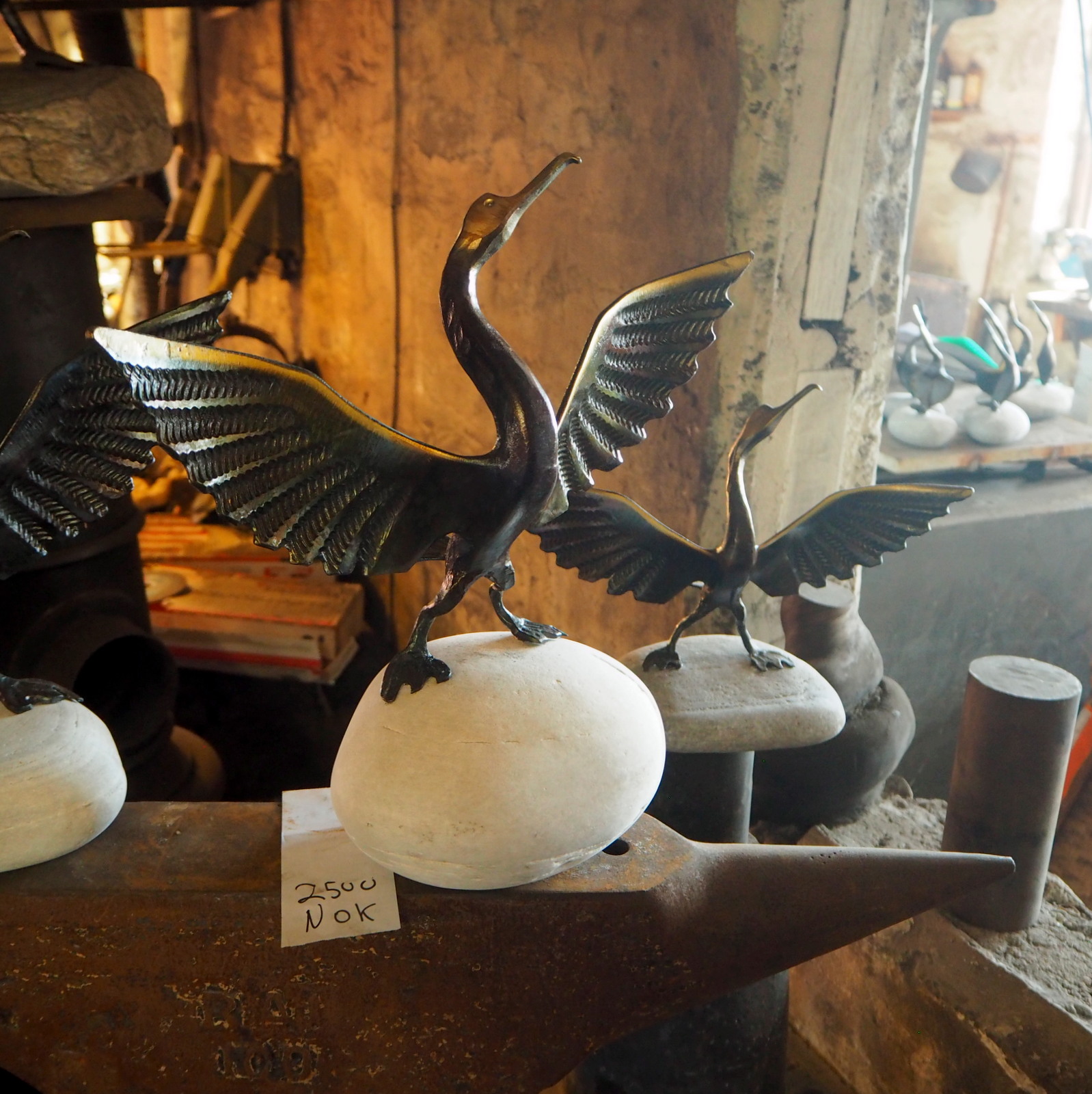 Sundin pieneen kylään päästessämme olimme jo tottuneet pääsymaksuihin. Täällä se kattoi kyläsepän työnäytöksen ja pienen museon ja kahvilan. Kyläseppä väkersi erityisesti merimetsoja, taisi olla juuri niistä kuuluisa, mutta jotenkin lintu ei kuulu suosikkeihimme, joten vaikka muuten lintuaiheisia matkamuistoja joskus sorrumme ostamaankin, niin merimetso jäi ostamatta.