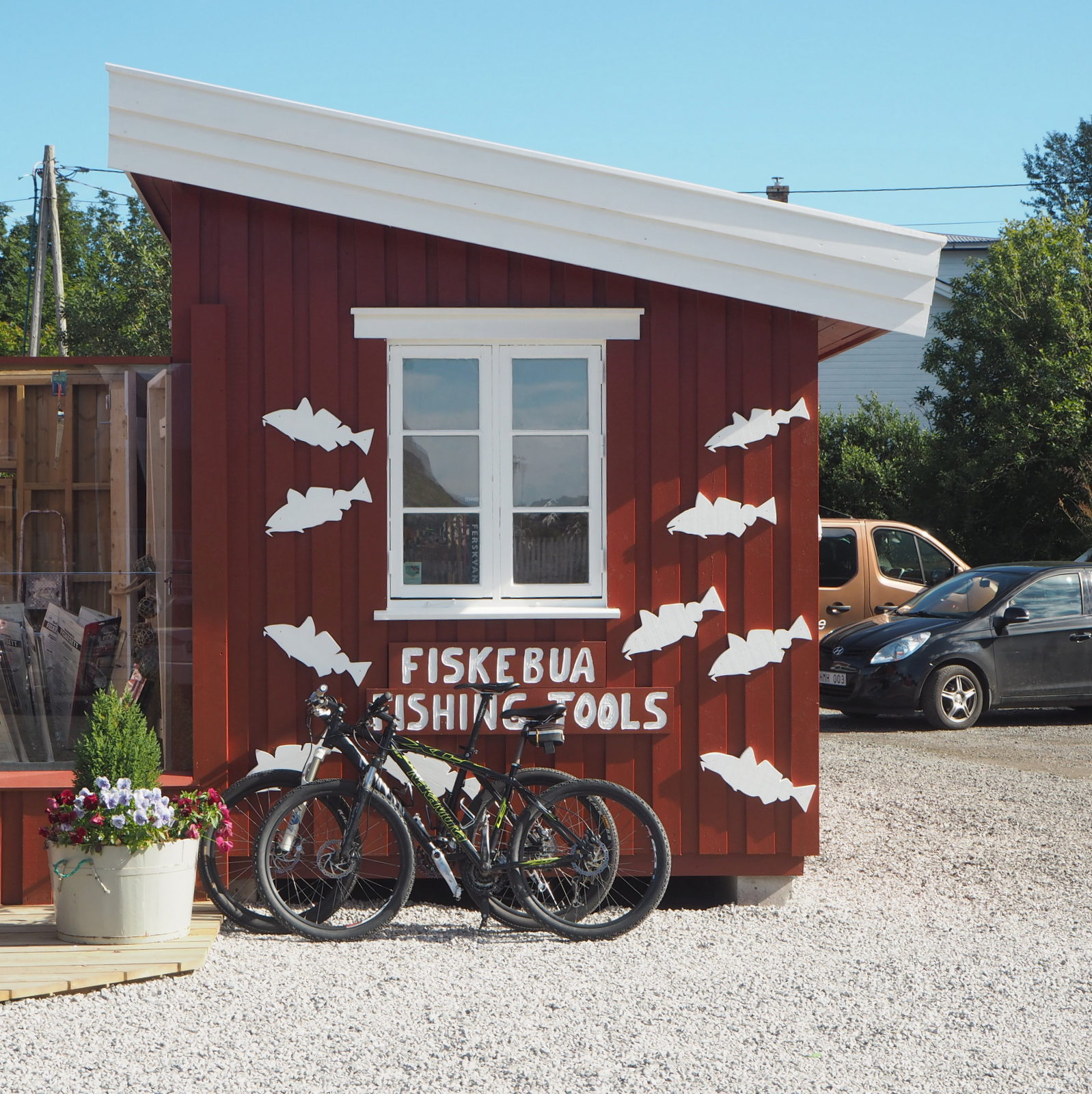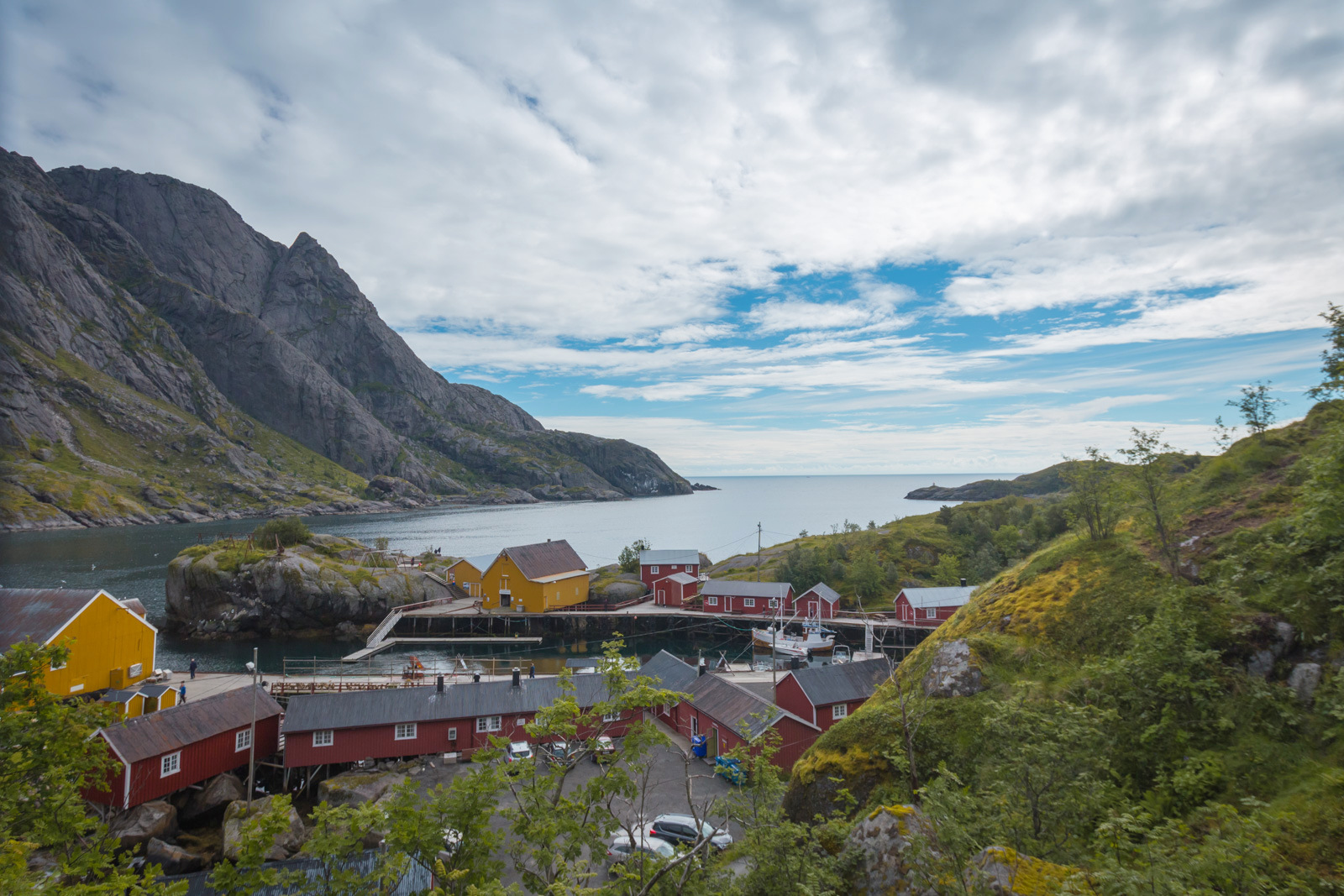 Tätä jotkut lähteet väittävät Lofoottien kauneimmaksi kyläksi. Meistä se oli kauneimmillaan heti kylään vievän tien risteyksessä olevalta näköalapaikalta – ja samaa mieltä tuntuivat olevan monet muutkin, jotka rinta rinnan kuvasivat täältä kylää. Alhaalla kylässä emme olleet lainkaan niin vaikuttuneita kuin vaikka Henningsvaerissa tai Ballstadissa, mutta osansa saattoi tietysti olla sillä, että kylä oli jo pitkäksi venyneen päivän viimeisiä käyntikohteita. Ravintoloita, pieniä kauppoja ja ainakin yksi taidegalleria täälläkin näytti olevan. Pizza oli ihan syötävä.