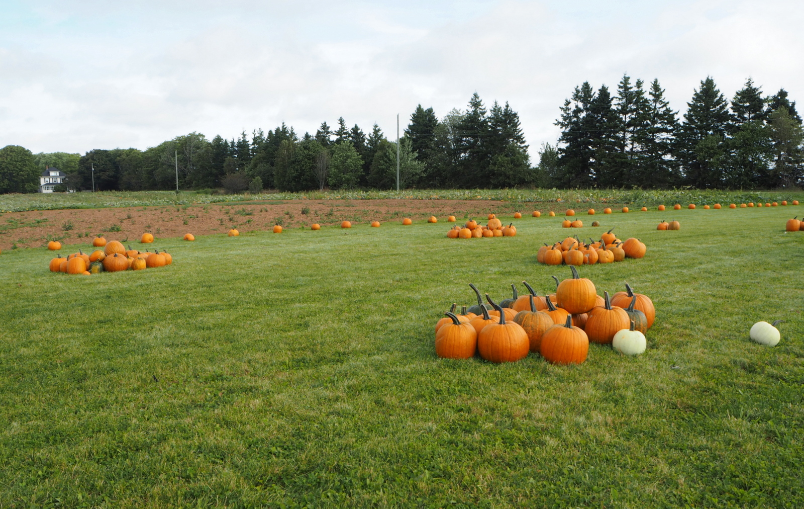 Kanadassa, vaikka olimmekin siellä jo syyskuussa, ajelimme Charlottetownista pohjoiseen, kun näin yhtäkkiä tien vasemmalla puolella kurpitsoja – kurpitsoja silmän kantamattomiin! Olisin niin halunnut pysähtyä ottamaan niistä kuvia, mutta alueella oli tietöitä ja liikenne oli ohjattu kulkemaan vuorotellen yhtä kaistaa pitkin. Paikassa ei juuri silloin vaan voinut pysähtyä eikä kääntyä ympäri.