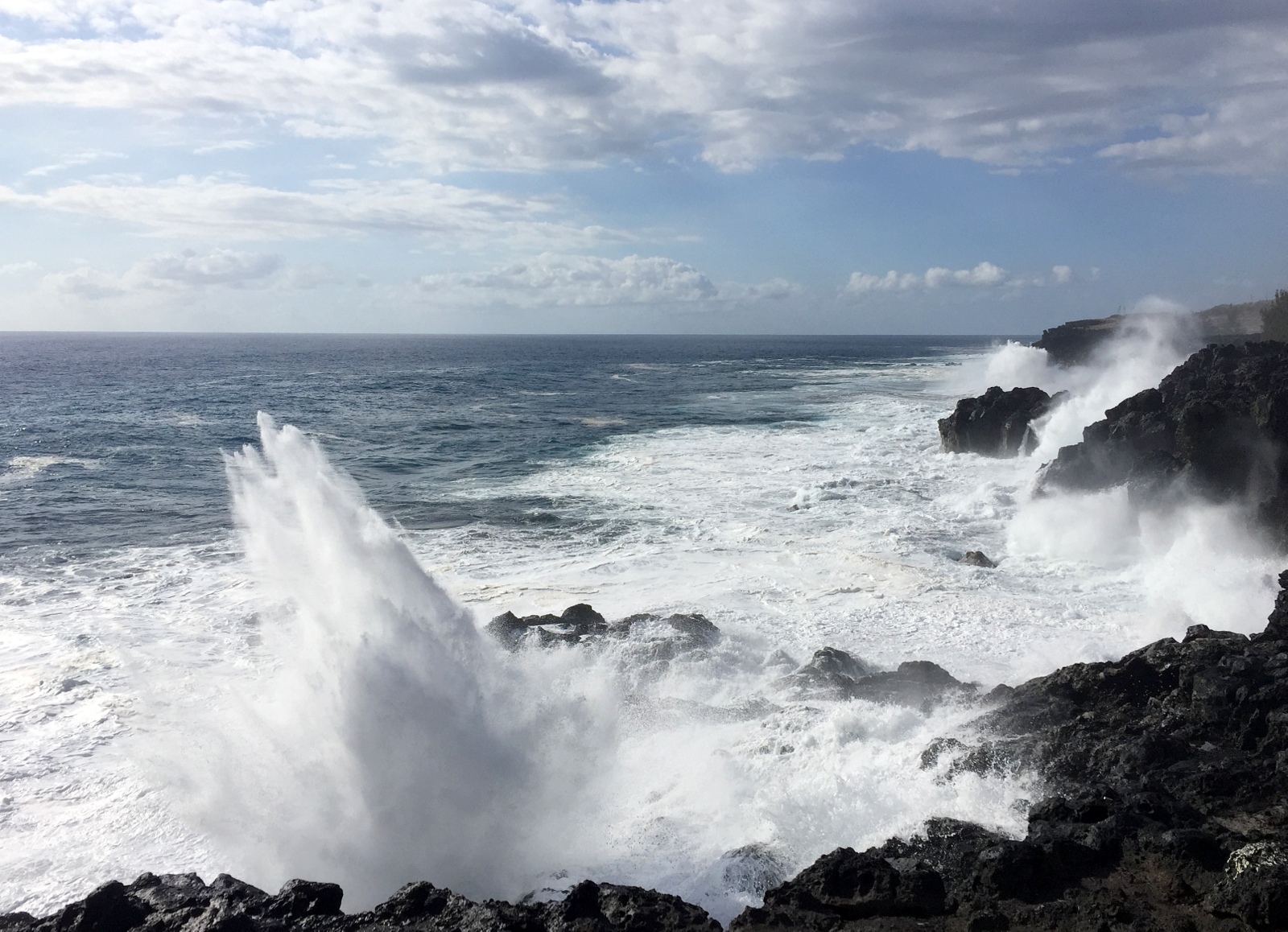Reunionin laavasaaren rosoisten rantojen tyrskyt olivat mieleemme. Saarta kiertäessämme pysähdyimme kolmessa kohtaa niitä katsomaan ja vaikka kierros olikin raskas, niin ei niistä kyllä yhtään olisi hennonnut jättää pois.