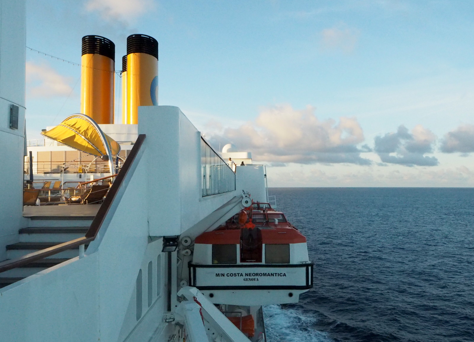 Yhtenä meripäivänä söimme lounaan lisämaksullisessä neoRomantica -ravintolassa ja kyseinen lisämaksu oli 19 euroa hengeltä: tuolla summalla (ja pöytävarauksella) sai rauhallisemman ympäristön, nopeamman ja henkilökohtaisemman palvelun ja parempaa ruokaa. Jos olisimme foodieita olisimme voineet harkita ostavamme paketin, jolla olisi saanut syödä kaikki matkan ateriat tuossa ravintolassa, mutta kun emme ole.
