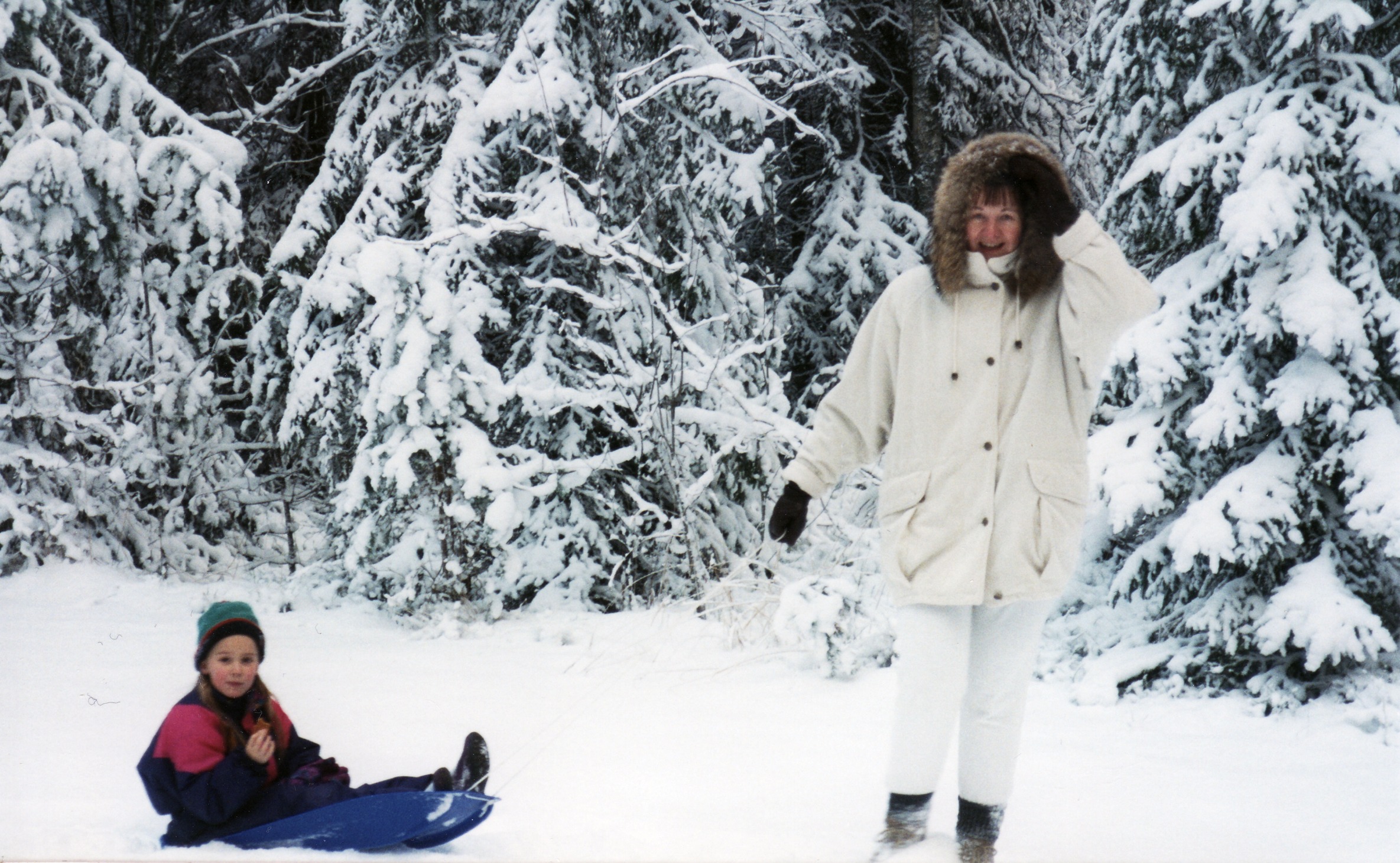 (Kuvissa yllä Pirkko peräkkäisinä jouluina Zell am Seessä ja Luostolla.)
