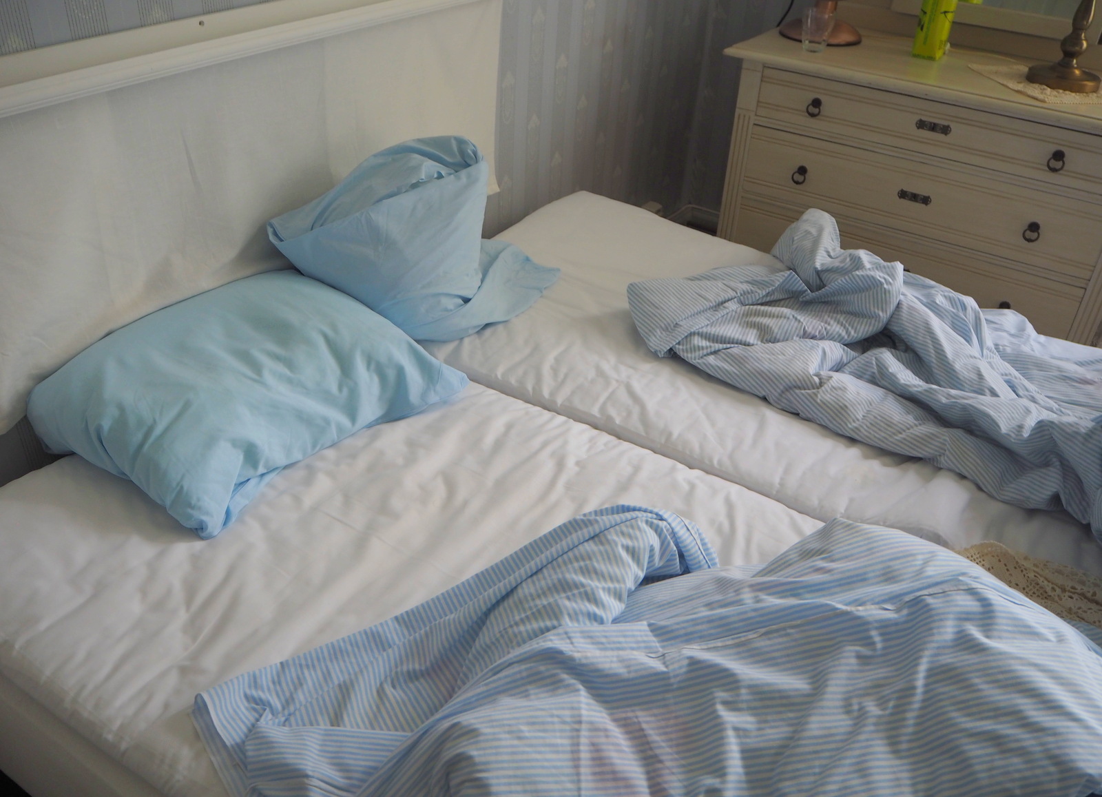 Tässä vaiheessa vuotta olin ja alkanut kyllästyä hotellisänkyjen kuvaamiseen ja heittäydyin ajoittain kapinalliseksi ja kuvasin niitä vasta aamulla. Siististi pedatut sängythän ovat aina jokseenkin saman näköisiä, jos vaikka nukutut sängyt olisivat mielenkiintoisempia!