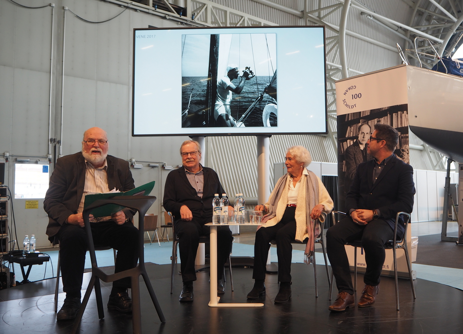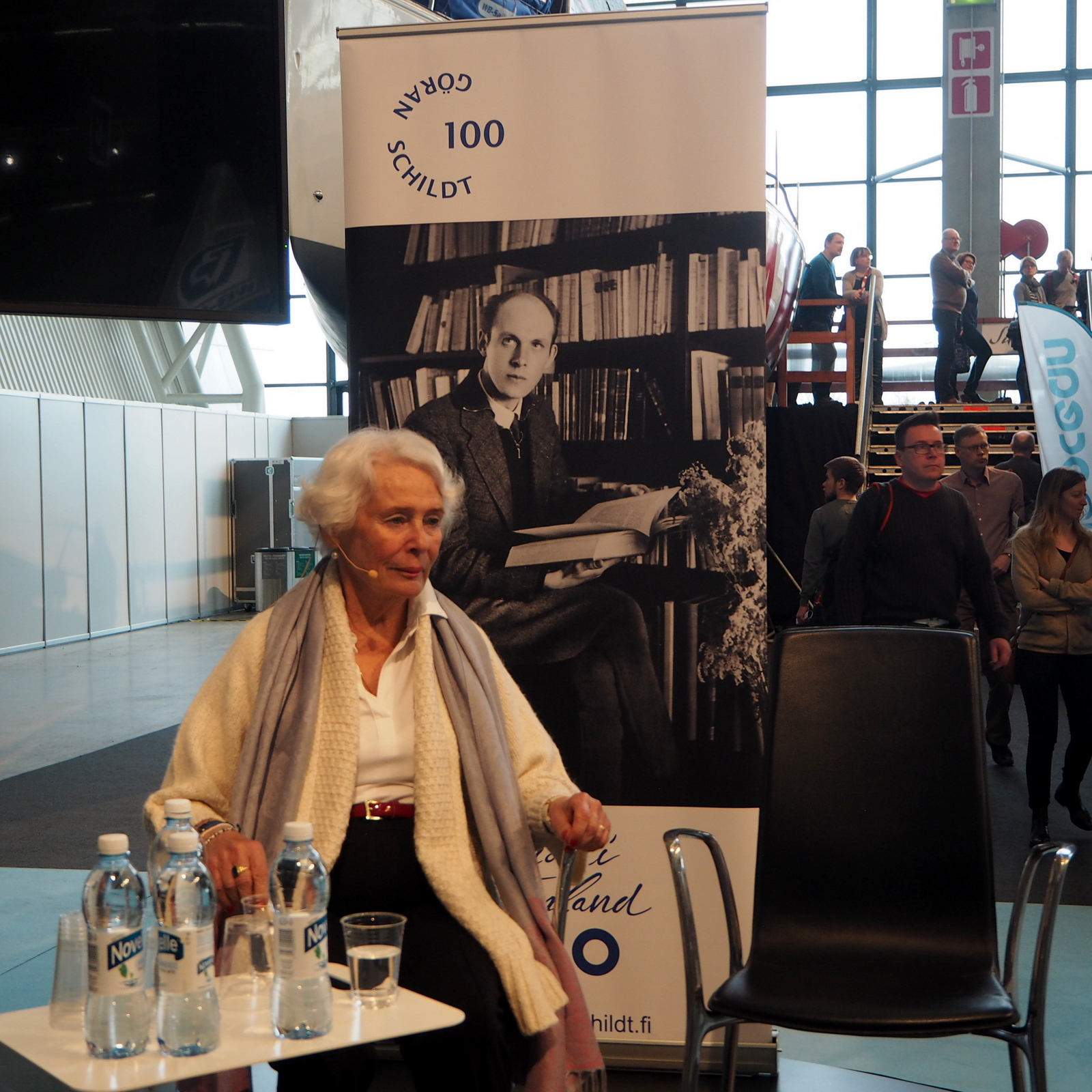 Pääkohteemme oli keskustelutilaisuus Göran Schildtin ja Leroksen ympärillä, joka oli tuonut myös edesmenneen kirjailijan vaimon, Christine Schildtin, Suomeen.