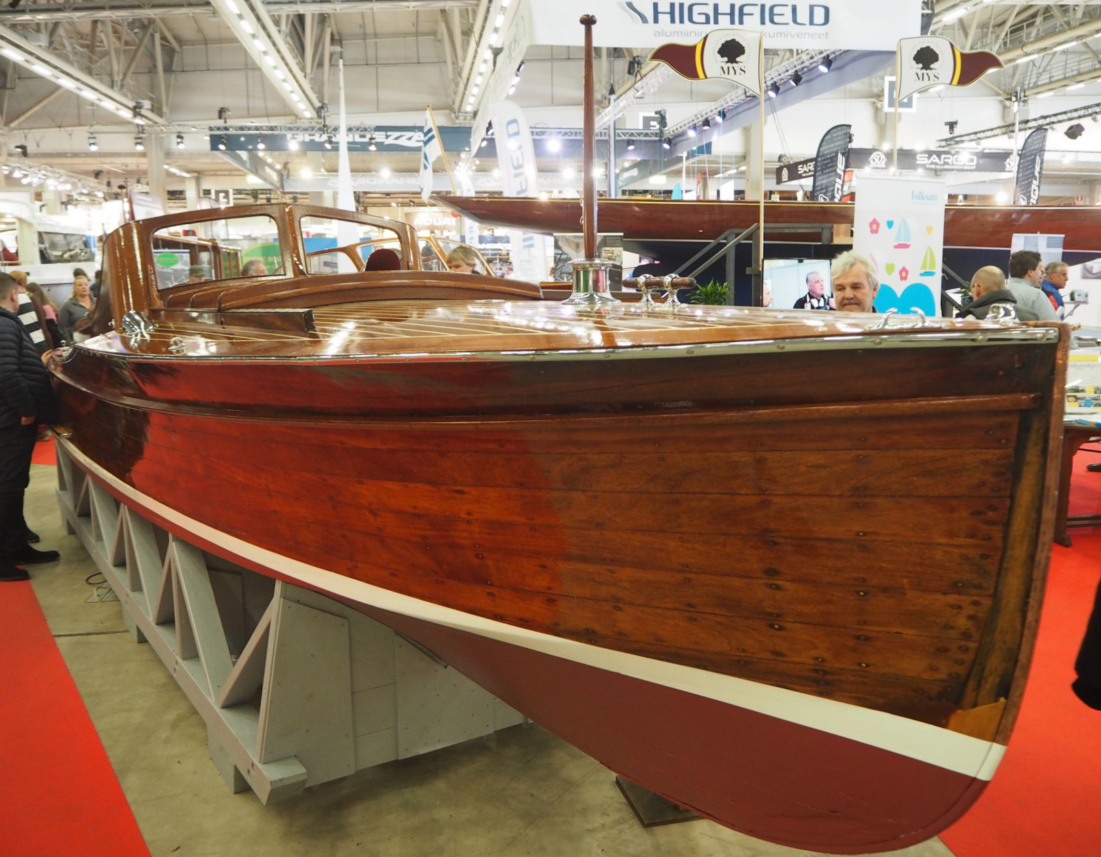 Göran Schildt -teeman jälkeen kiertelimme tietysti muutenkin messuilla. Löysimme entisöidyt Kultaranta -veneet ja yllätyimme todella positiivisesti löytäessämme Outboard Museumin vanhasta veneestä puoli metriä korkean Meriharakan!