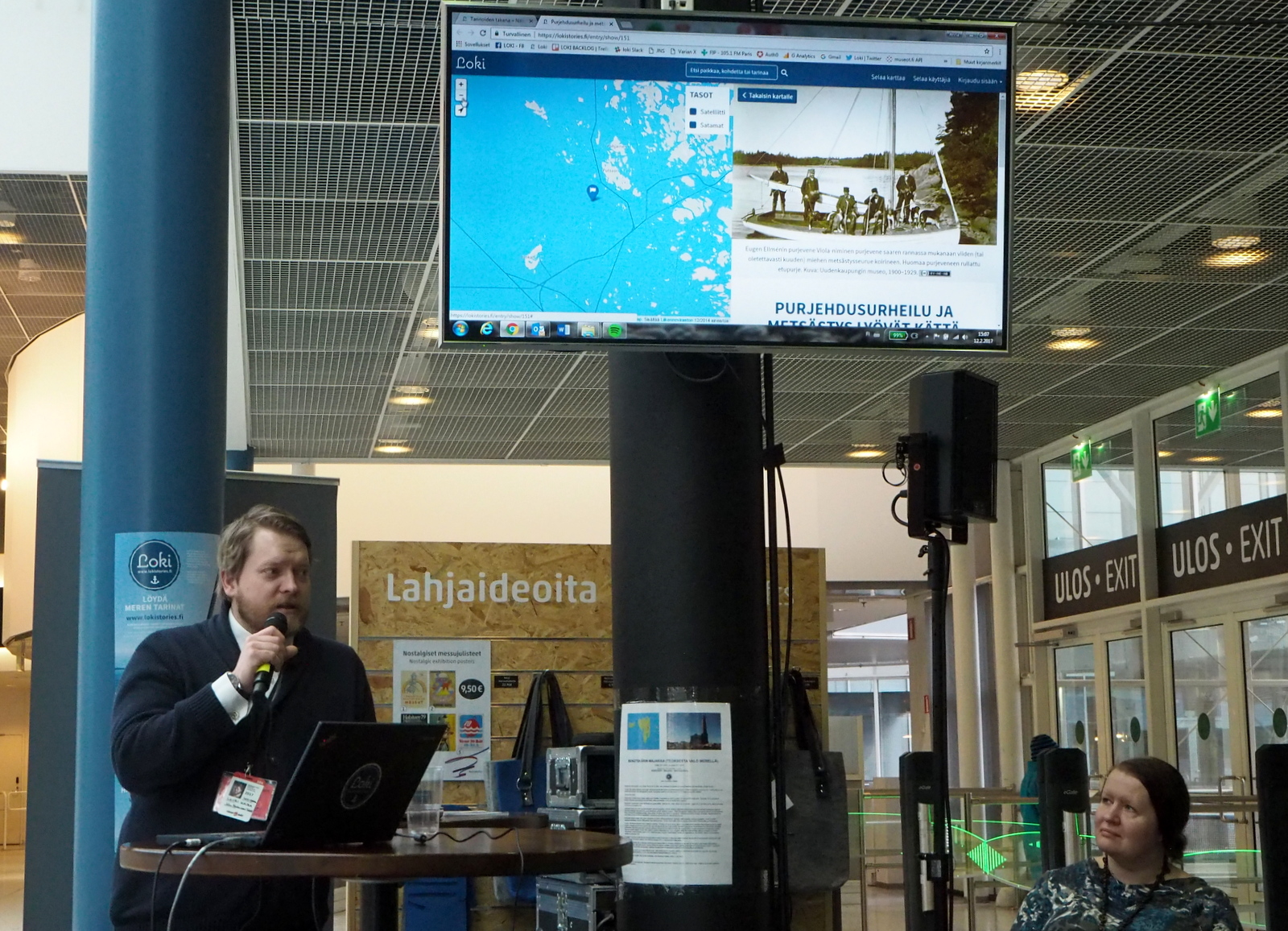 Lauri Kaira poimi esitykseensä joitakin veneilyn historiaan liittyviä tarinoita Loki-palvelusta: metsästysretkeen liittyvä purjehduskuva vuosisadan alusta oli hiukan sitä tutkittaessa tuonut esiin kokonaisen tarinan ja kieltolainkin aikana valtakunnan silmäätekevät suhtautuivat ainakin merellä alkoholijuomiin melko suopeasti. Eipä olisi Algot Niska, salakuljettajana kunnostautunut, muuten tainnut päästä NJK:n jäseneksi …