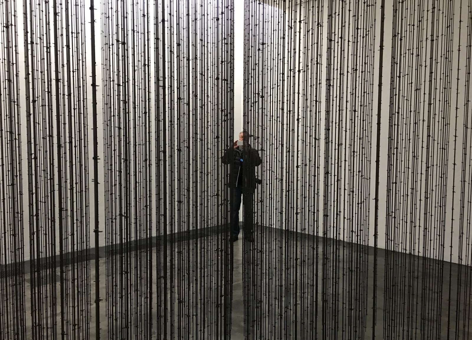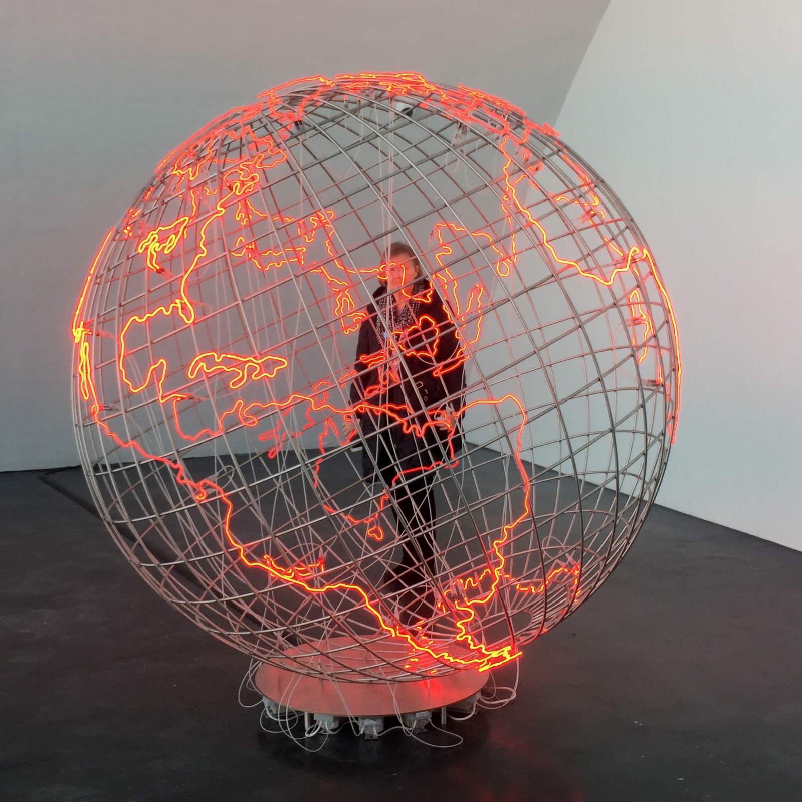 Kuten Kusaman näyttely myös Mona Hatoumin työt Kiasmassa jäivät meiltä melkein viimeiseen päivään. Näyttely päättyi sunnuntaina ja me onnistuimme lopulta käymään siellä jo (?) torstaina. Arki-aamuna Kiasmassa ei sentään tarvinnut jonottaa yhtään :-)