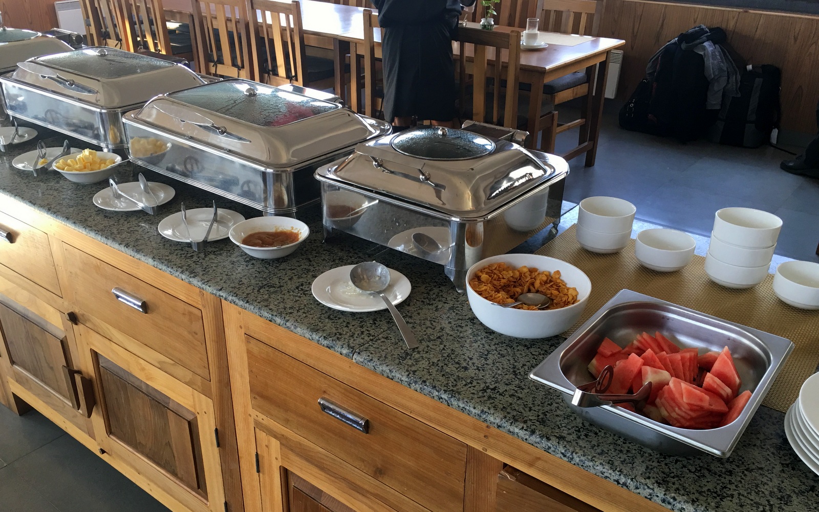 Leipää tosiaan oli aika vähän tarjolla, eli ei kuulu sikäläiseen perusruokaan – minä taas pidän leivästä, joten minulle se kyllä turistiaamiaisella kelpasi.