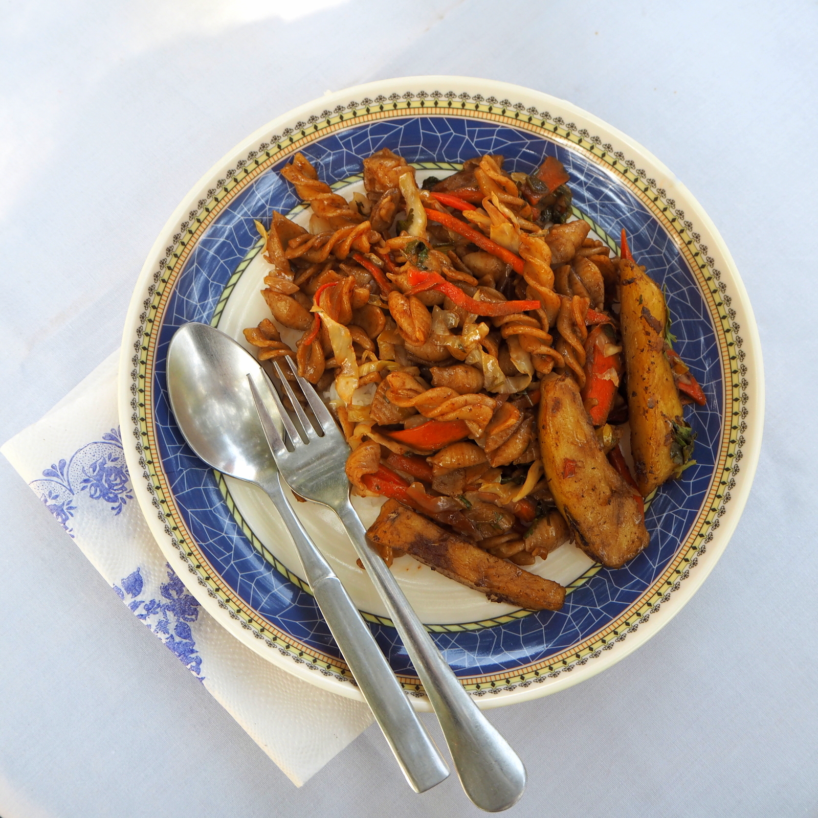 Hotelliaamiaiset, ravintoloissa päivän mittaan nautitut lounaat ja joskus erillisissä ravintoloissa, joskus hotellin ravintolassa, nautitut illalliset pitävät kyllä hengissä, mutta varsinaisista kulinaarisista elämyksistä ei oikein voi puhua. Aterioilla on tarjolla aina suunnilleen samat ruokalajit, nuudelia tai pastaa, riisiä, paistettuja perunoita, lämpimiä vihanneksia (usein kaalia ja porkkanaa), luisia kananpaloja, joskus muutakin lihaa ja joskus vihannes- tai perunanyyttejä. Jälkiruuaksi on jäätelöä tai hedelmiä, useimmiten vesimelonia.