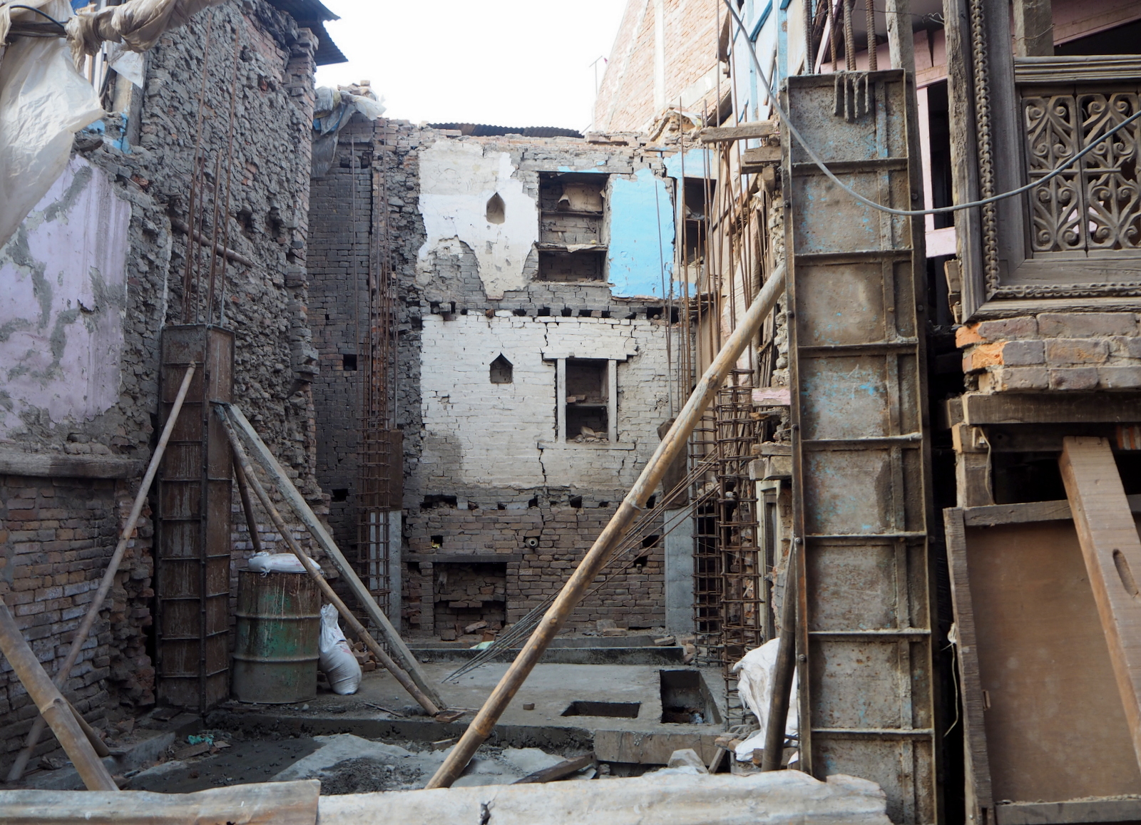 Bhaktapurin historiallinen keskustakin oli monin kohdin kärsinyt maanjäristyksestä, mutta korjaustyöt ovat meneillään.
