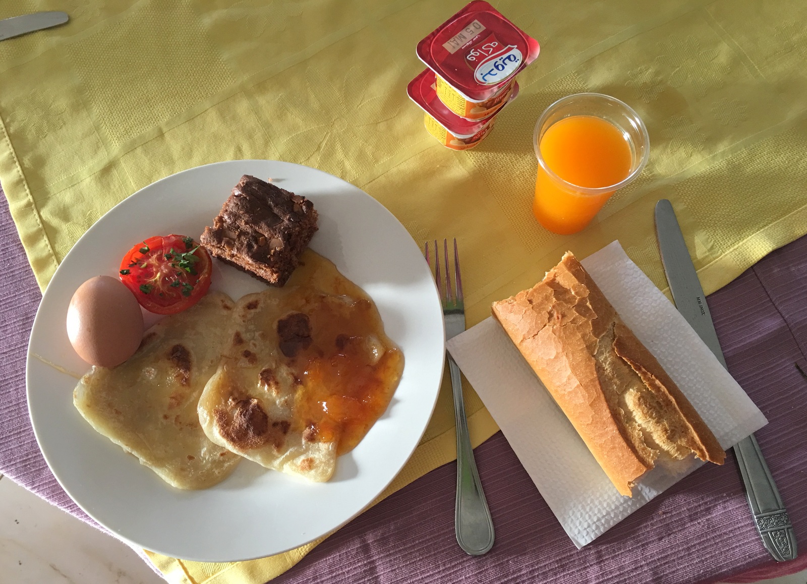 Aamiaisilla tuli toimeen, mutta eivät ne mitään makuelämyksiä tarjonneet: patonkia, juustoa, kuivahtaneita croissantteja, hilloa, ehkä kananmuna, muutamassa paikassa jogurtti, keinotekoisen makuista appelsiinimehua.
