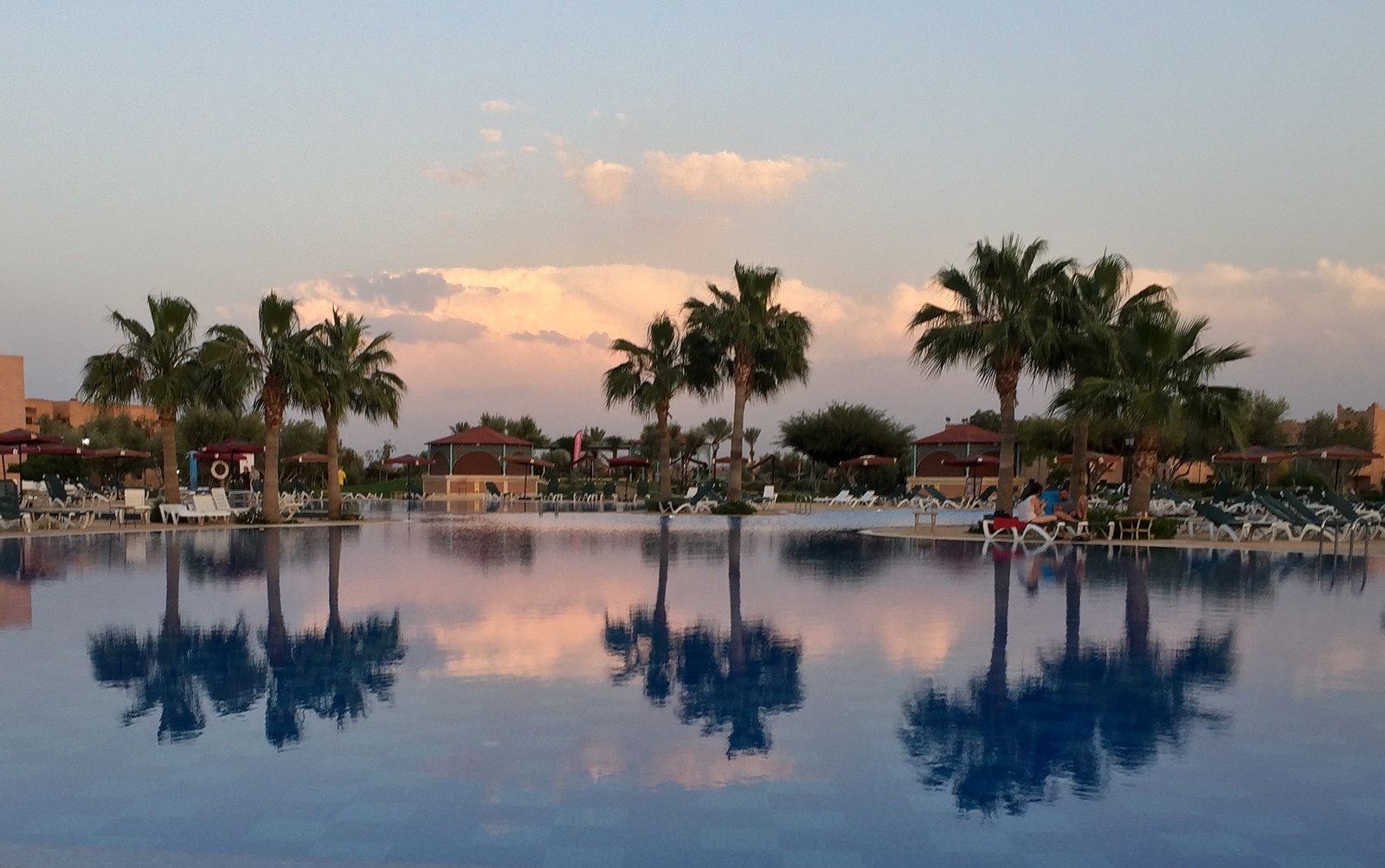 TSS kuvaa toisen viikon hotellia 4 tähden 1 luokan hotelli (paikallinen luokitus) tai luksushotellina. Ryads Parc –hotellin alue onkin kaunis isoine uima-altaineen ja pienet kaksikerroksiset rakennukset ovat riad-tyylisiä sisäpihoineen.