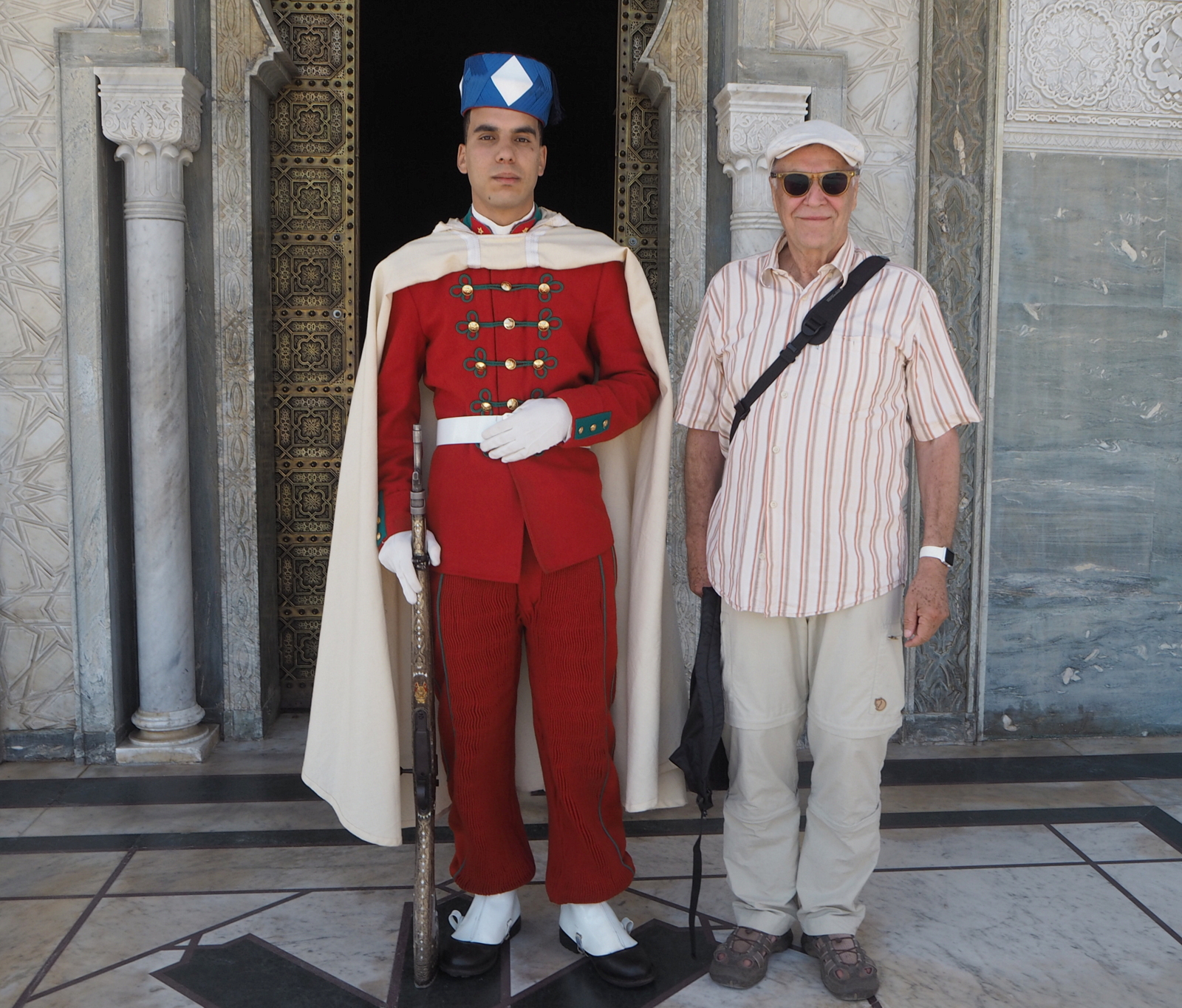 Mausoleumi on suhteellisen uusi, 1970-luvulta, ja sen sisällä on entisen kuninkaan Mohammed V:n ja kahden hänen poikansa haudat. Mausoleumi oli toki hieno sekin, mutta melkein vaikuttavampi oli sen ja rannalla sijainneen Hassan-tornin väliin jäävä iso aukio, jolle oli tuotu antiikkisia pylväitä Volubiliksestä (Unesco-kohde Fesin ja Meknesin lähestöllä, johon palaan toki blogijutun muodossa vielä vähän myöhemmin). Aukio oli vaikuttava, mutta jäin miettimään, että mitähän arkeologiasta oikeasti jotain tietävät ja välittävät ajattelevat siitä, että pylväät on siirretty pois Volubiliksen alueelta tänne. Faktaa, että pylväät todella olisivat Volubiliksesta en onnistunut tarkistamaan muista lähteistä, mutta näin turkkilainen TSS:n oppaamme väitti – tosin monet muut(kin) hänen väittämistään eivät osoittautuneet ihan tosiksi.