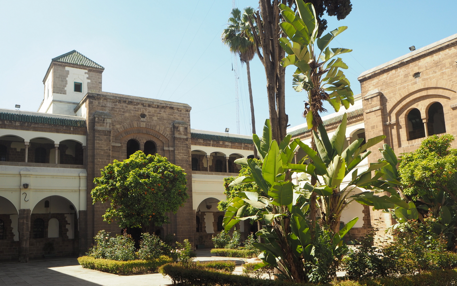 Mohammed V -aukio, jota ehkä kaupungin keskusaukioksi voisi väittää, oli osittain remontissa, joten sen reunalla olevien hallintorakennusten arkkitehtuuria emme sen enempää jääneet ihmettelemään, kuten emme aukiota hallitsevia pulujakaan.