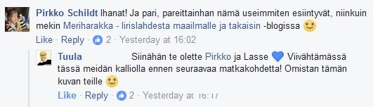Kiitos Tuula! Ehkäpä mekin, jos Turun seudulle ennen heinäkuun loppua päädymme, poikkeamme myös täällä. Tall Ship Race on vähän harkinnassa, hotellihuonekin varmuuden vuoksi varattuna – tuollaisen ison tapahtuman yhteydessä sellainen pitää varata ainakin puoli vuotta etukäteen, mutta tarvittaessa siitä pääsee eroon vaikka päivää ennen, eli katsotaan mihin päädymme :-)