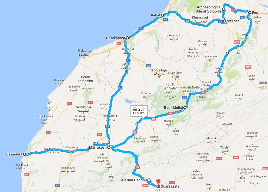Reittimme Marokossa oli kokonaisuudessaan tällainen: