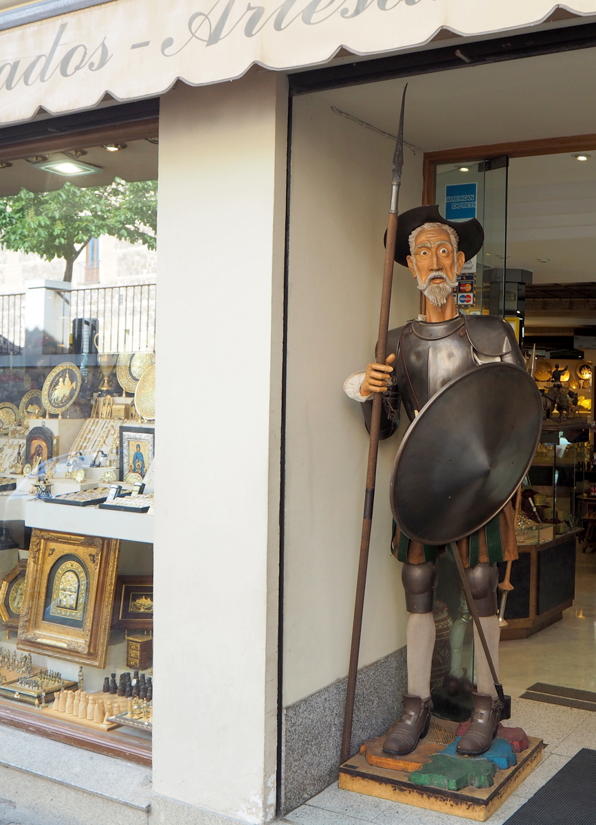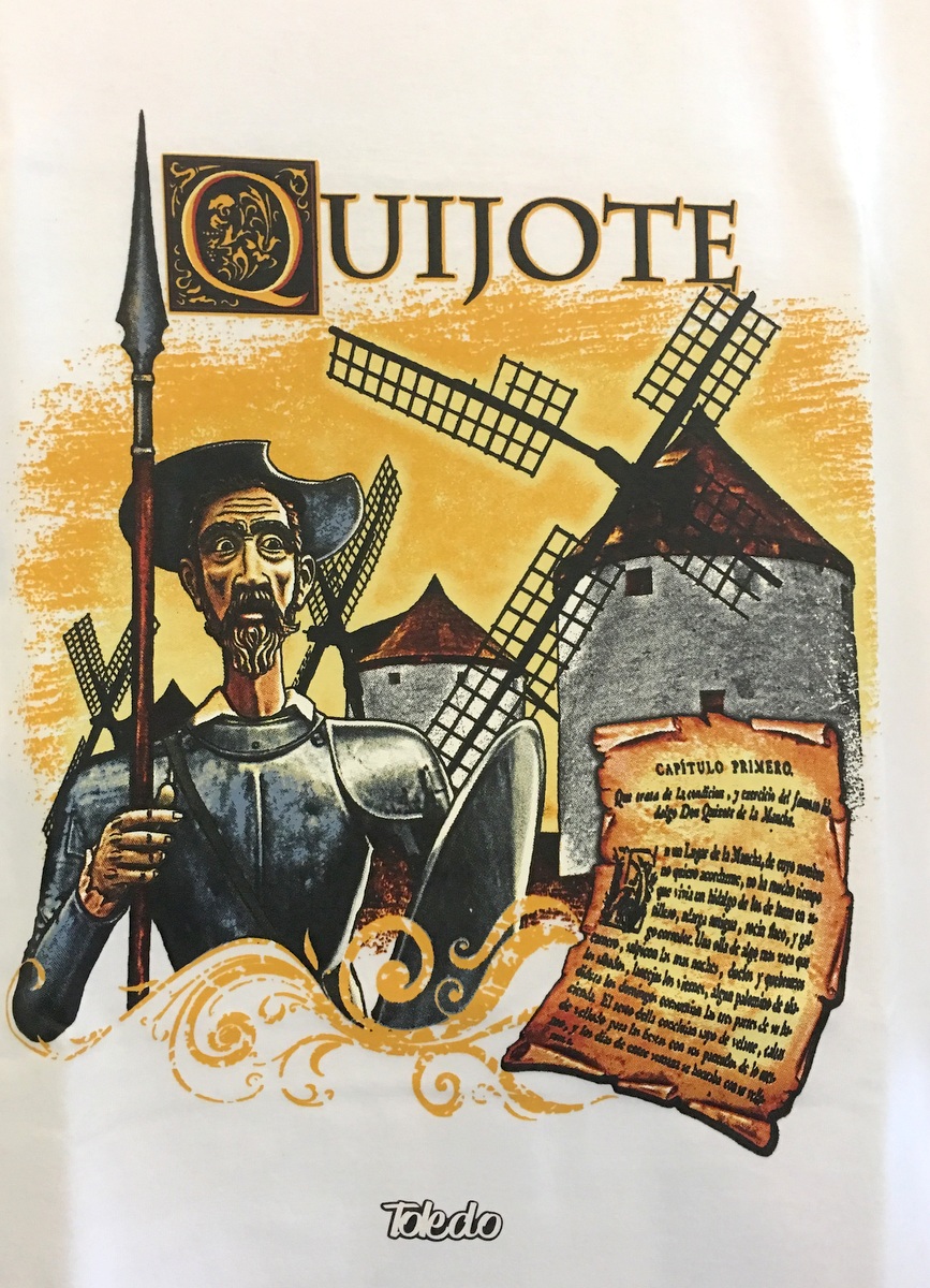 Toledon seudut, Manchan alue, on myös Don Quijote -tarinoiden aluetta. Don Quijote onkin täällä suosittu hahmo turistimyymälöissä. Toki Madridissakin, jossa mekin kävimme katsastamassa Don Quijotea ja Sancho Panzaa esittävää isoa patsasta Plaza Espanalla.