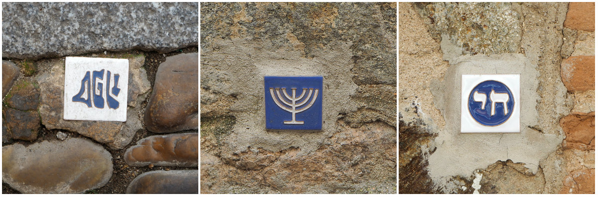 Santo Tomen kirkolta jatkoimme matkaamme Euroopan vanhimpaan synagoogaan. Reitti synagoogalle löytyy paitsi kartan, navigaattorin tai oppaan avulla myös katukivetykseen ja rakennusten seinille sinne tänne sijoitettujen pienten juutalaisten symbolien avulla.