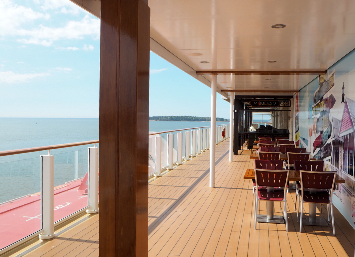 Maistiaisena tässä kuitenkin jo kuva Norwegian Getawayn ravintolan ulkoterassilta, joka Helsingin keväässä oli tyhjä ja autio ja laivalla nautitun lounaan lihavaihtoehto, niin pysytään ruokateemassa.
