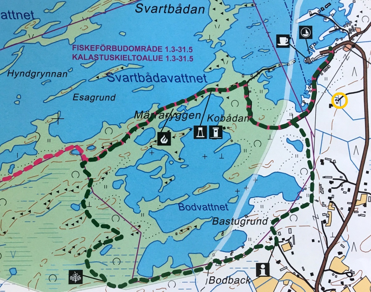 Autolla liikuttaessa parhaan kuvan alueesta saa luultavammin Björköbyssä, Svedjehamnin alueella. Aikani etsiskeltyäni – olimme taas vähän myöhään liikkeellä, sillä alueen majoituskapasiteetti ei ole kovin suuri – sain meille varattua pienen kesämökin ihan sataman tuntumasta ja lisäksi päiväretken Valassaarille.