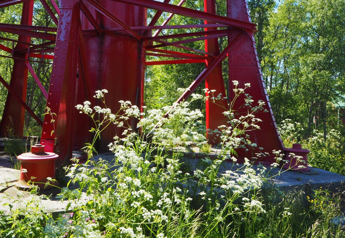 Lopulta saavutamme Ebbskärin ja Storskärin yhdistäneen vanhan sillan ja tiedämme sentään olevamme jo majakkasaarella. Vähän vielä matkaa pitkospuita pitkin, nyt vehreässä lehtipuumetsässä, sillä Storskärin edellisestä kulottamisesta on enemmän aikaa kuin Ebbskärin kulottamisesta ja lopulta näemme punaisen, teräsrakenteisen majakan. Se, että lehtipuumetsän läpi kulkevaa osuutta polusta kutsutaan “Rakkauden poluksi” ei tuossa vaiheessa enää hidastanut vauhtiamme yhtään!