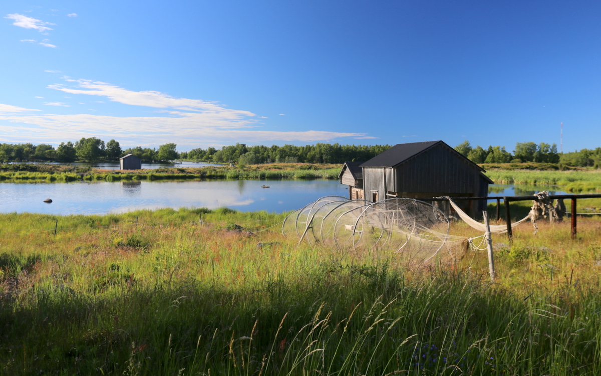 Mökin pihalta lähti polku rantaan ja kääntymällä vasemmalle pääsi kiertämään Bodvattnet -nimisen lammen (joka vielä vähän aikaa sitten oli merenlahti) ja kääntymällä oikealle pääsi suoraan Salteriet -ravintolaan.