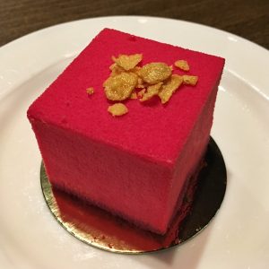 Kielletty kaupunki -teemaa jatkoimme vielä hetken museon kahvilassa nauttien Kielletty kaupunki -leivoksen, joka herätti aivan erityistä kiinnostusta Instagram -tilillämme: “Mistä se on tehty? (tummasta kakkupohjasta, mango-passion-kermamousseesta, vadelmahillosta ja kultaisista maissihiutaleista)”, “Ei niitä ollut tarjolla kun minä kävin siellä!”, “Täytyypä käydä tuolla jonain päivänä!”