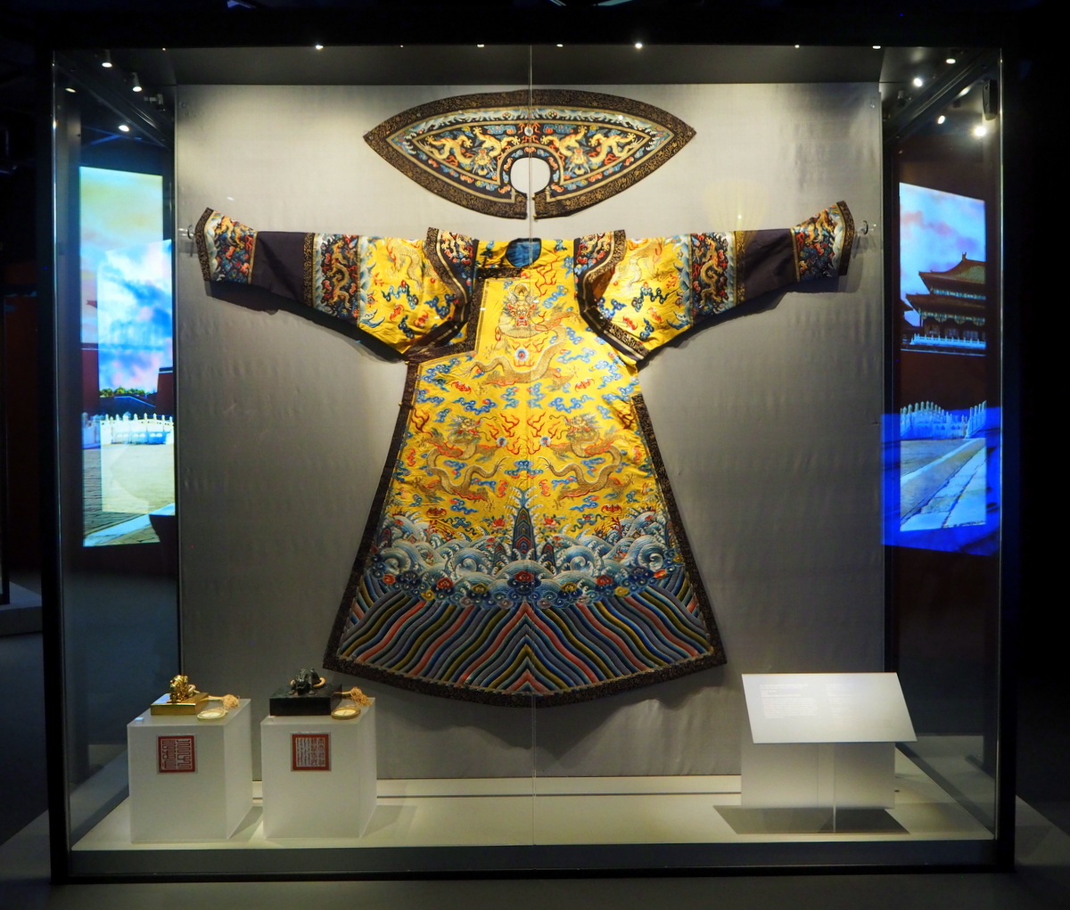 Näyttelyssä on esillä keisarillinen valtaistuin, silkkimaalauksia, kalligrafiaa, koruja, koriste-esineitä ja keisarillisia asusteita Kiinan keisarien hovista.