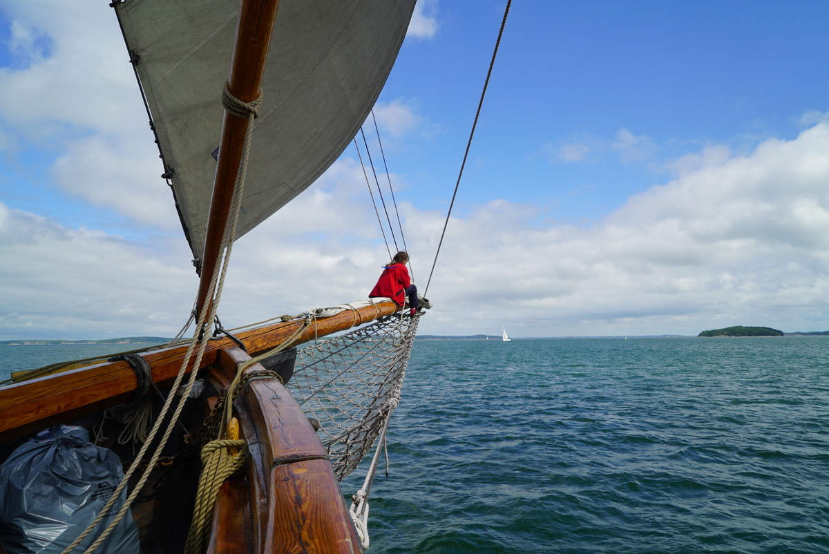 Itse usein vähän vierastan ainakin pitempiä videoteoksia osana taidenäyttelyä, sillä en ole orientoitunut pysähtymään yhden teokseen ääreen niin pitkäksi aikaa, mutta tämä ei ole pitkä, noin 10 minuuttia, ja sitä on helppo katsella aloittaen mistä kohdasta tahansa, sillä se kertoo elämästä näillä vanhoilla purjelaivoilla vuodenkierron verran ja juttu on yhtä ihana aloitit sitten syksystä, talvesta, keväästä tai kesästä!