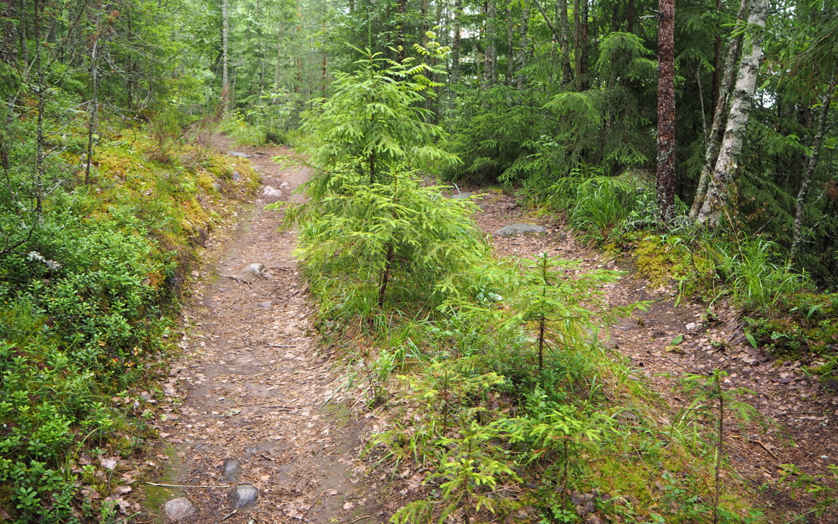 Polku ei ole ihan kesy, muttei nyt vaikeakaan. Alkumatkasta se on vähän leveämpi, myöhemmin mutkaisempi, kivisempi ja kapeampi. Pari kosteinta kohtaa ylitetään pitkospuita pitkin ja lopussa jyrkimmissä kohdissa on portaat.