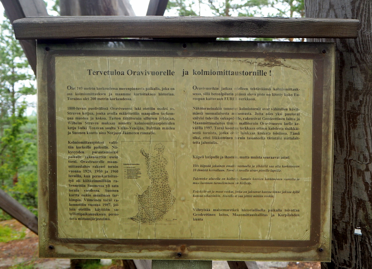 Minä sain tässä jokunen viikko sitten listaani Petäjäveden kirkon, joka oli itselleni viimeinen Suomen kohteista. Struven ketjusta olen myös käynyt tuolla Oravivuorella ja joskus 80-luvulla, kun se ei vielä ollut Unesco-kohde, Alatornion kirkossa. Olin silloin jollain nuortenretkellä ja muistan silloin kuulleeni ekan kerran Struven ketjusta. Oravivuori on kiva helposti saavutettava paikka ja näkymät ihan komeat.