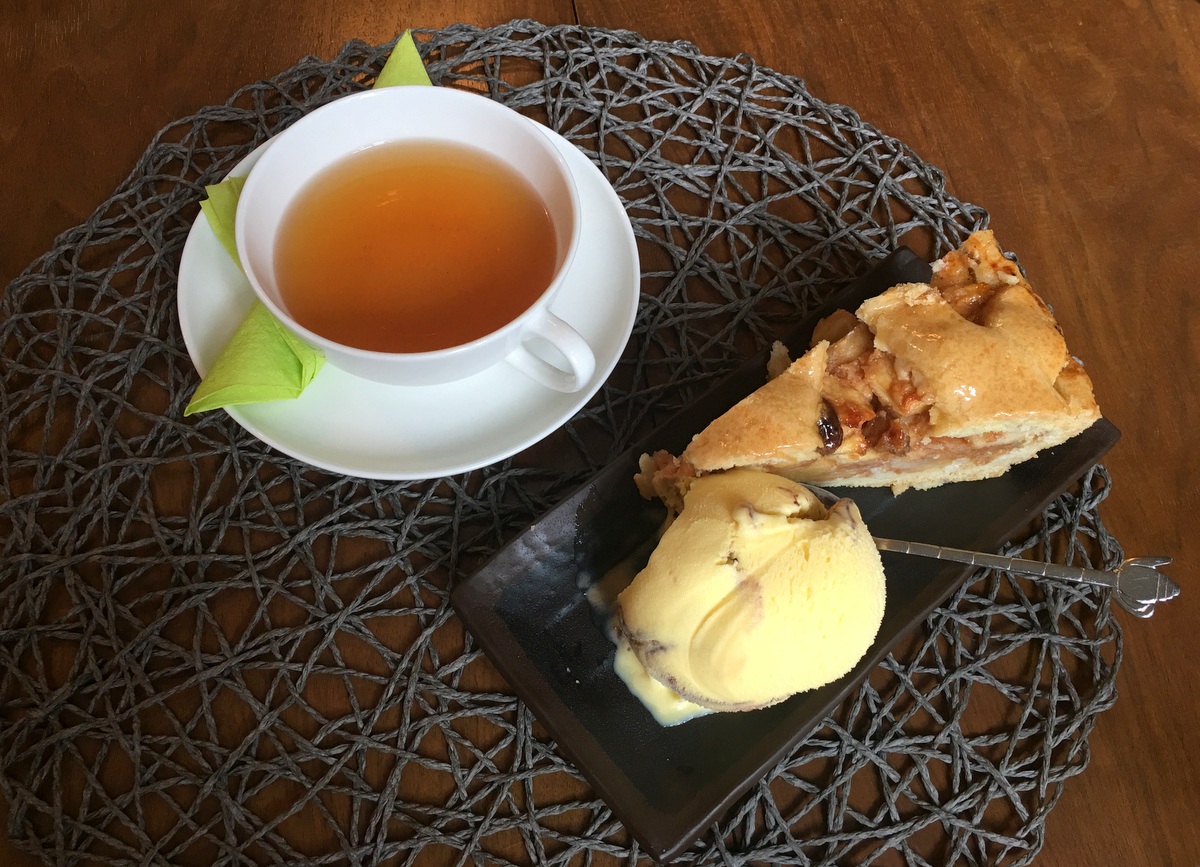 Paikka löytyikin helposti kävelyetäisyydellä museosta eikä hieman pilvisenä keskiviikkona ollut kovin ruuhkainenkaan. Vitriinistä löytyi testattava kakkulaatu ja muutaman pienen väärinymmärryksen jälkeen valitsimme jos ei sadoista, niin ainakin kymmenistä teelaaduistakin kakulle mielestämme sopivan ja asetuimme nauttimaan viehättävästä miljööstä.